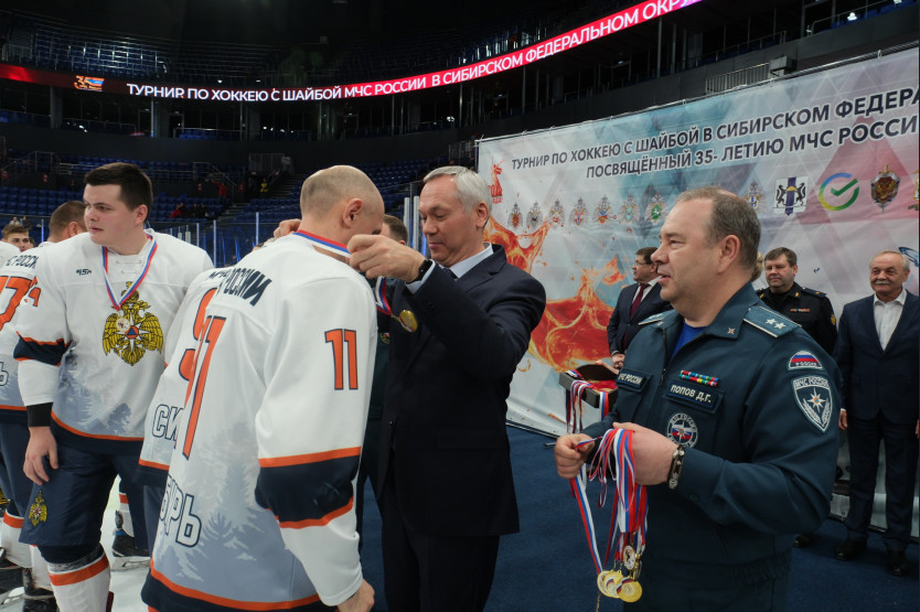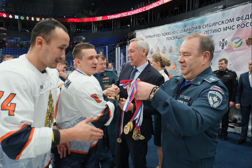 Андрей Травников вручил кубок и медали победителям хоккейных состязаний турнира МЧС