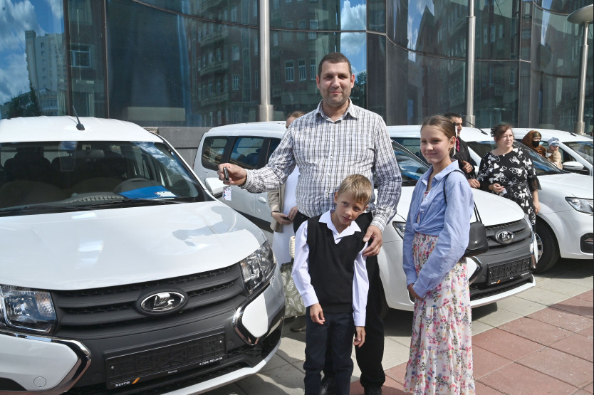 26.08.2025 Андрей Травников накануне Дня знаний вручил ключи от автомобилей многодетным семьям