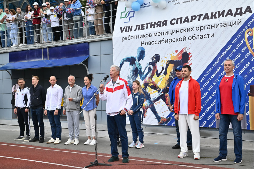 23.08.2025 Губернатор Андрей Травников принял участие в церемонии открытия финальных соревнований VIII летней Спартакиады работников медицинских организаций региона