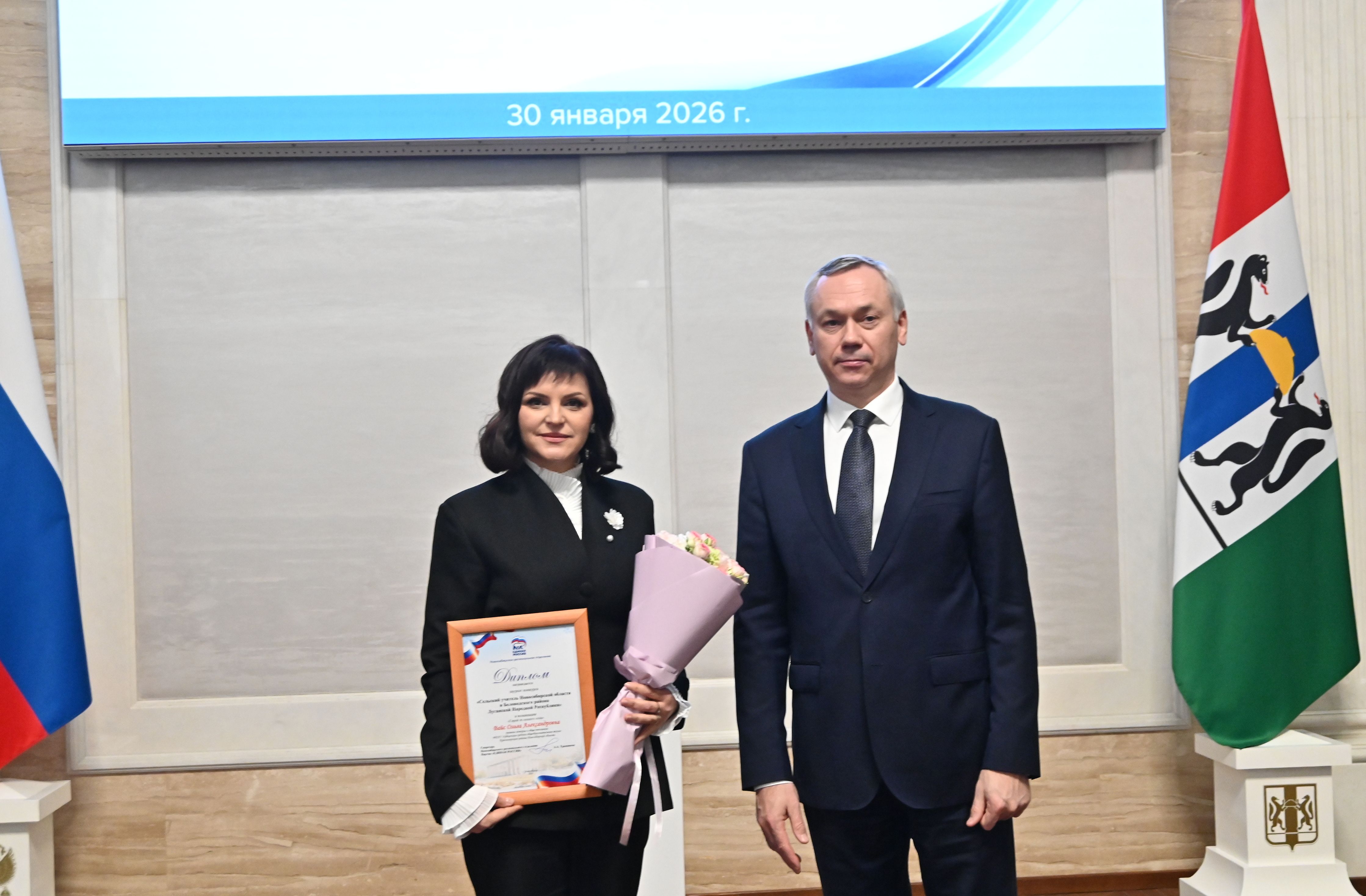 30.01.2026 Губернатор Андрей Травников поздравил победителей и лауреатов профессионального конкурса «Сельский учитель»