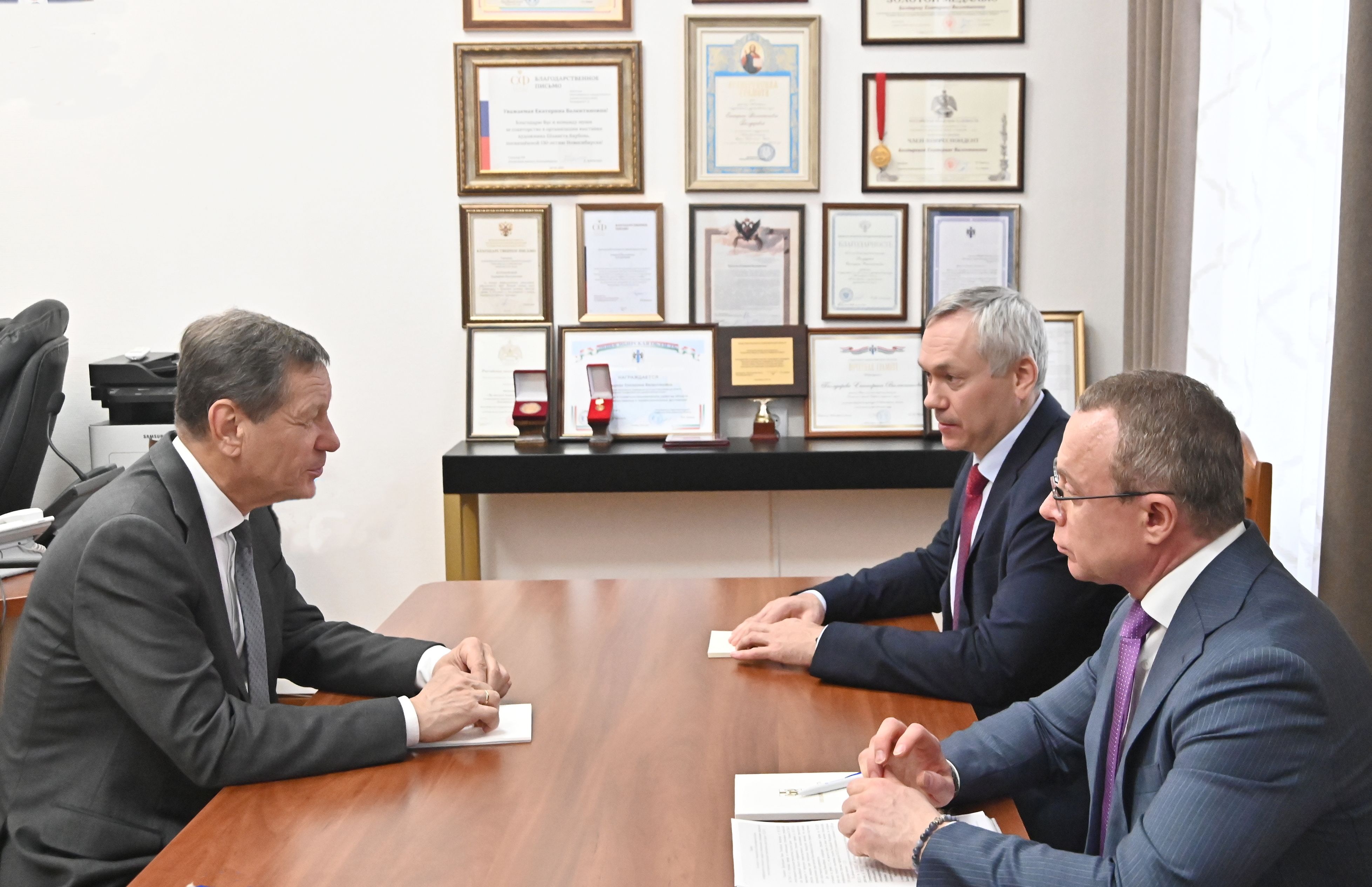 06.02.2026 Андрей Травников и Александр Жуков во время рабочей встречи обсудили реализацию в Новосибирской области масштабных проектов федерального уровня