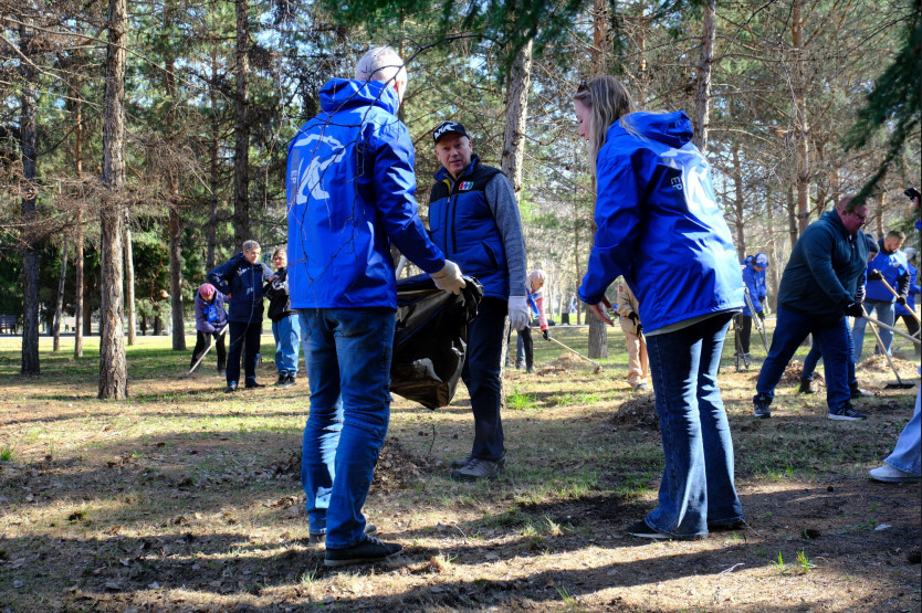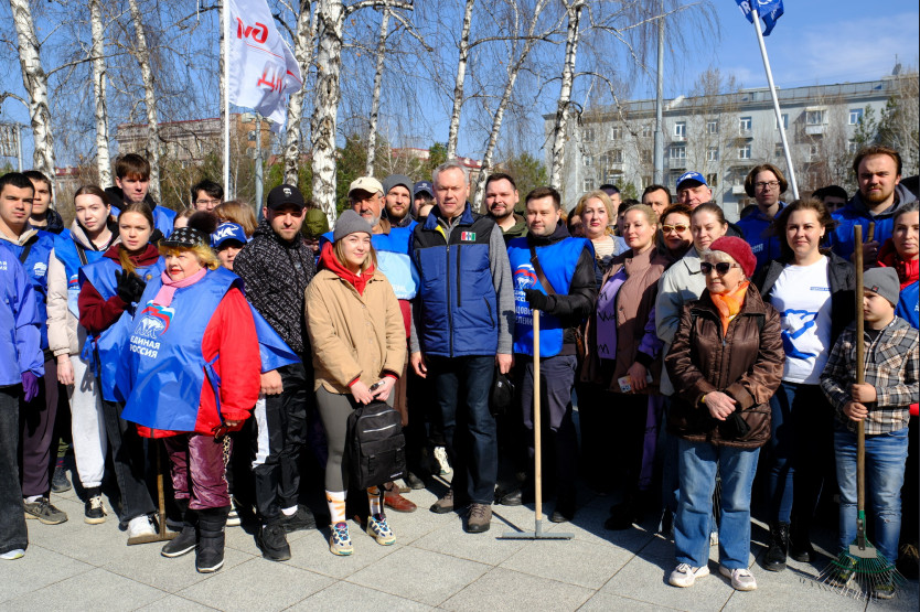 Губернатор Андрей Травников вместе с новосибирцами вышел на общегородской субботник на Монументе Славы
