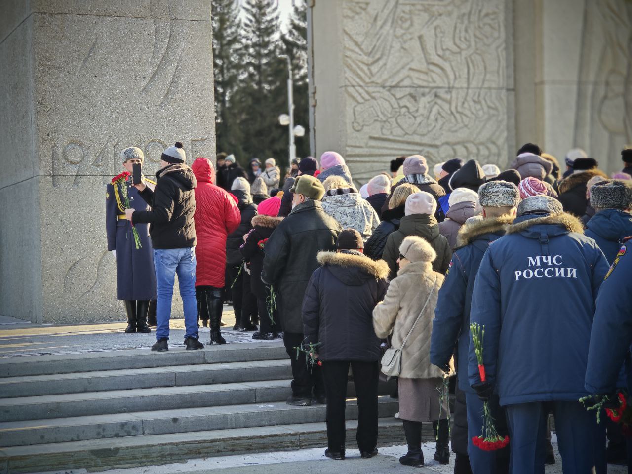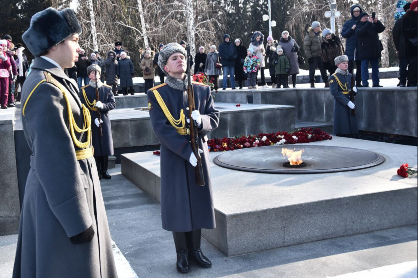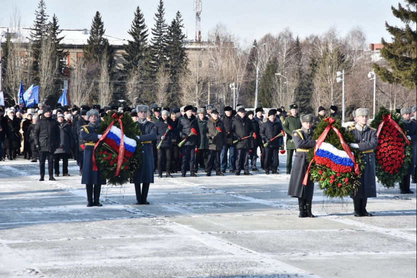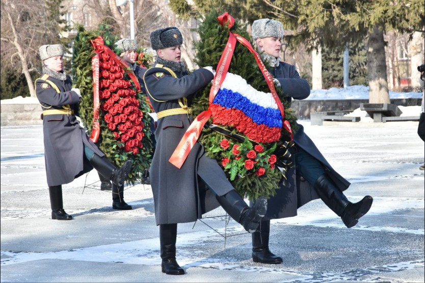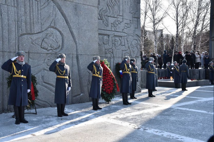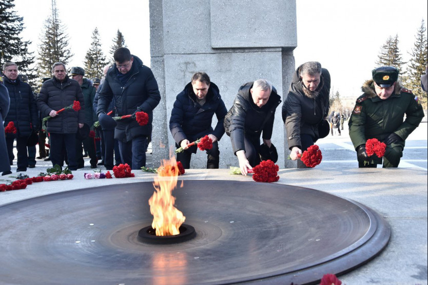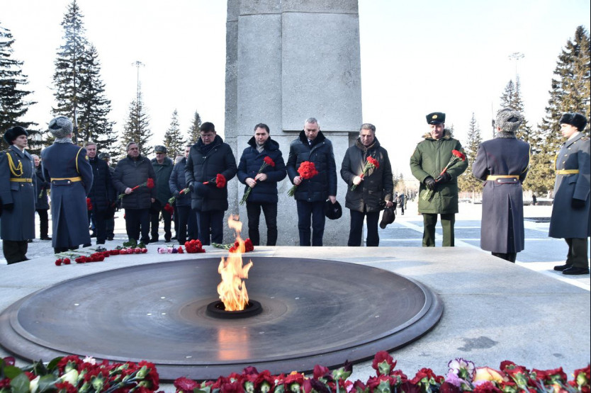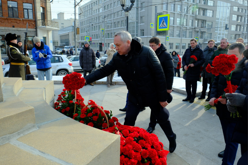 Андрей Травников вместе с новосибирцами возложил цветы на Монументе Славы