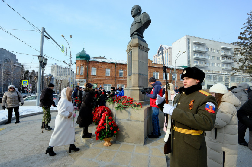 Губернатор Андрей Травников возложил цветы к бюсту трижды Героя Советского Союза Александра Покрышкина