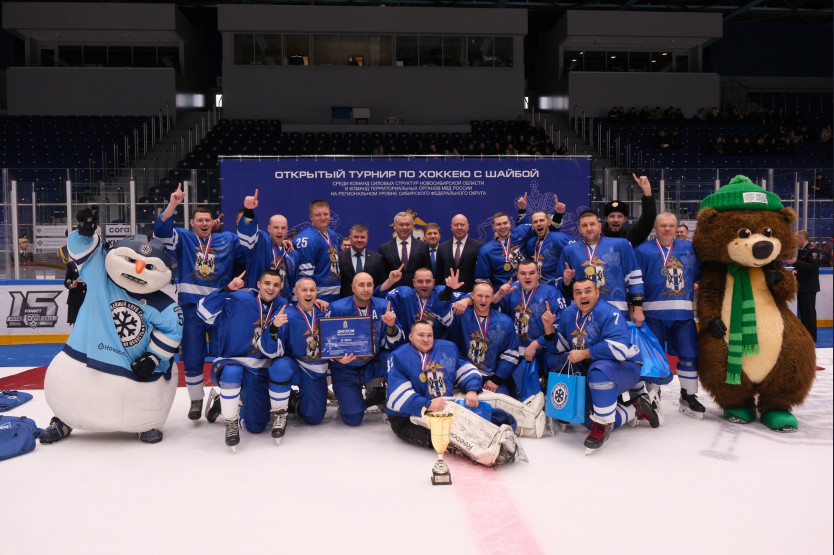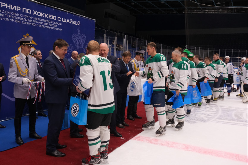 Андрей Травников и Андрей Кульков поздравили победителей турнира по хоккею с шайбой среди команд силовых структур
