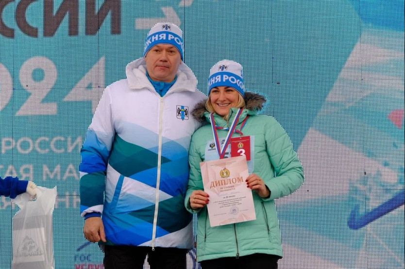 10.02.2024 Губернатор Андрей Травников вместе с тысячами жителей региона принял участие в соревнованиях «Лыжня России»