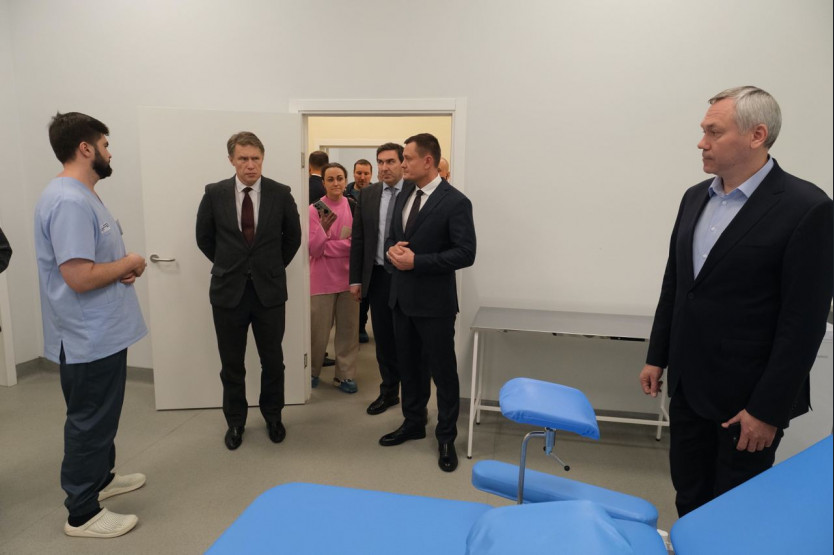 10.12.2023 Михаил Мурашко и Андрей Травников оценили условия в новой поликлинике Краснообска перед открытием