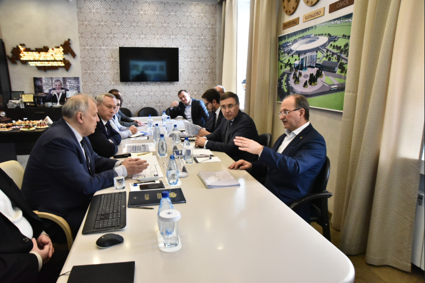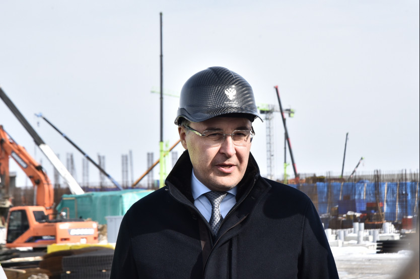 19.03.2024 Глава Минобрнауки Российской Федерации Валерий Фальков и Губернатор Андрей Травников посетили строительную площадку Сибирского кольцевого источника фотонов