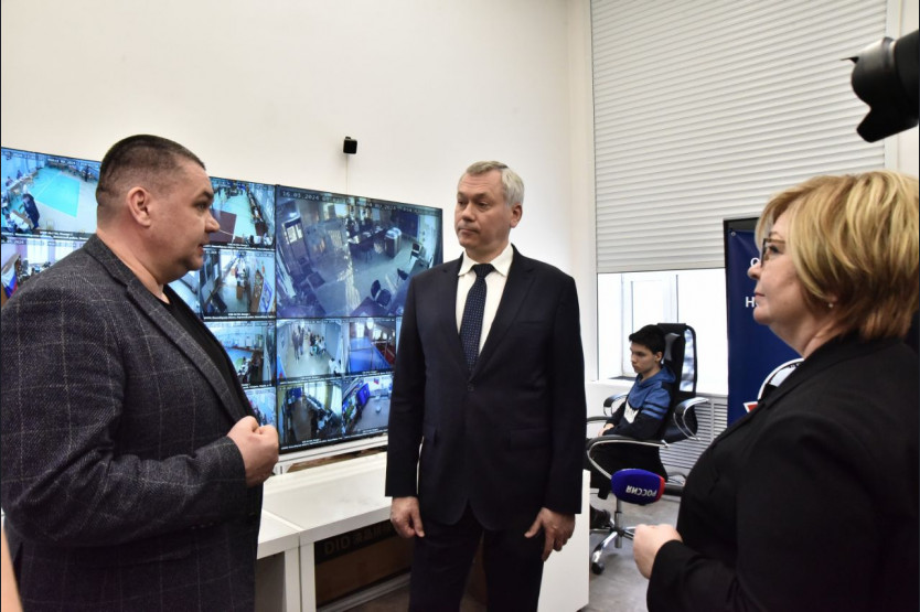 16.03.2024 Андрей Травников проверил работу Центра общественного наблюдения за ходом голосования на выборах Президента России