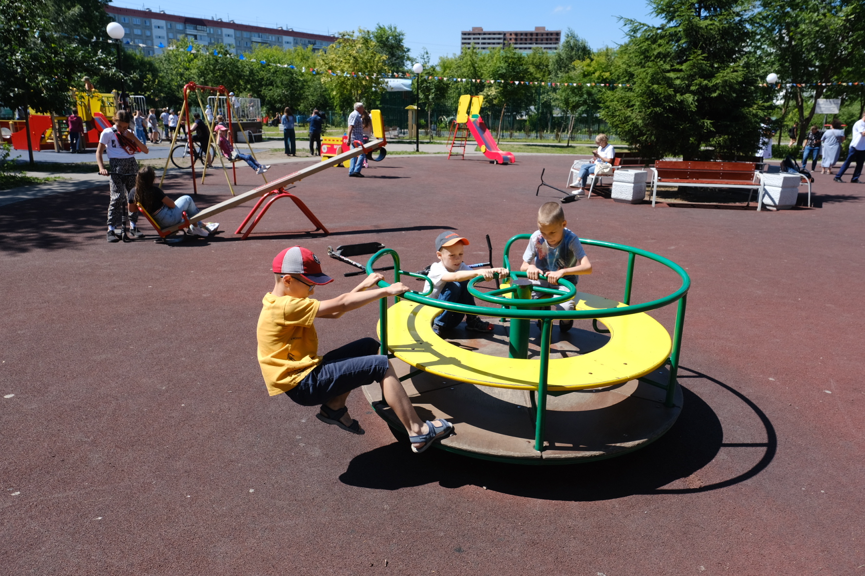 «Благодаря тому, что была разработана долгосрочная программа, которая сегодня продолжается в рамках национального проекта, появляются вот такие долгожданные площадки во дворах. Программа будет работать до 2024 года. Задача регионального отделения, местных отделений партии «Единая Россия», обеспечить контроль, чтобы эти объекты ещё много лет находились в нормальном состоянии, радовали жителей», — поставил задачу Андрей Травников.