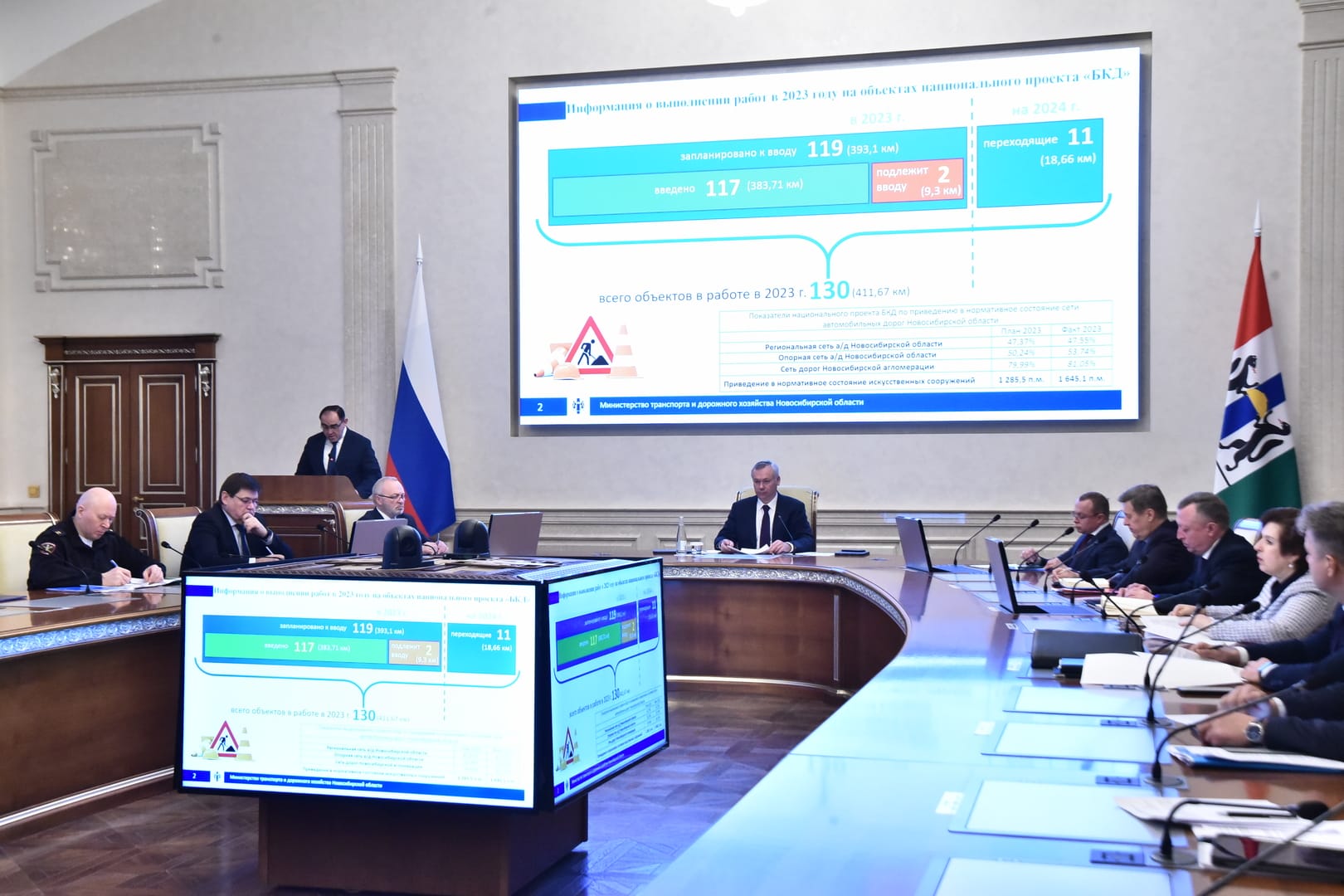 Губернатор Новосибирской области провёл оперативное совещание в Правительстве региона. С докладом об итогах выполнения программы дорожно-строительных работ в 2023 году выступил министр транспорта и дорожного хозяйства Новосибирской области Анатолий Костылевский.