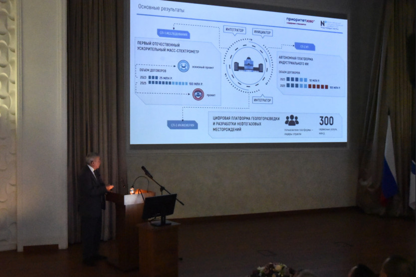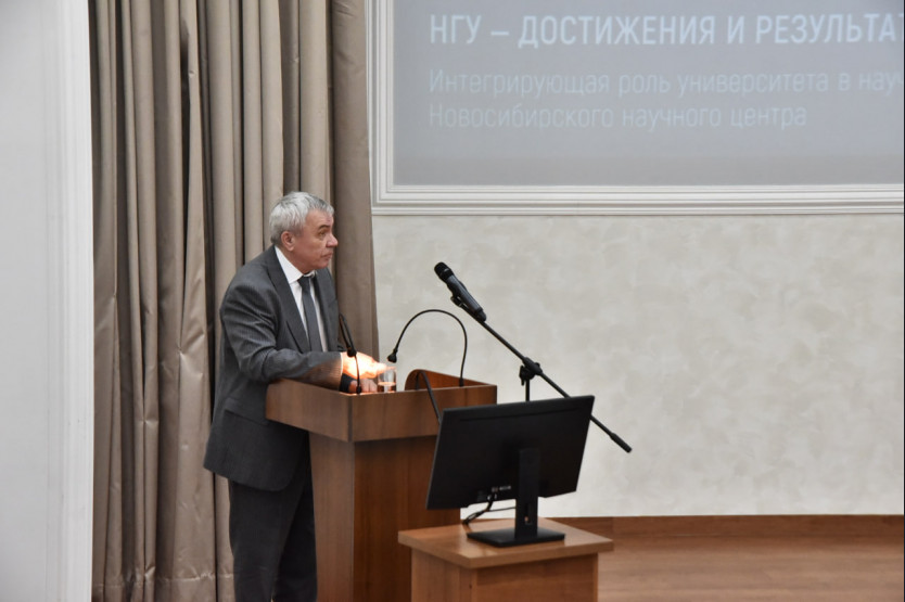 Доклад «НГУ – Достижения и результаты. Интегрирующая роль университета в научно-техническом развитии Новосибирского научного центра» представил ректор вуза, академик РАН Михаил Федорук.