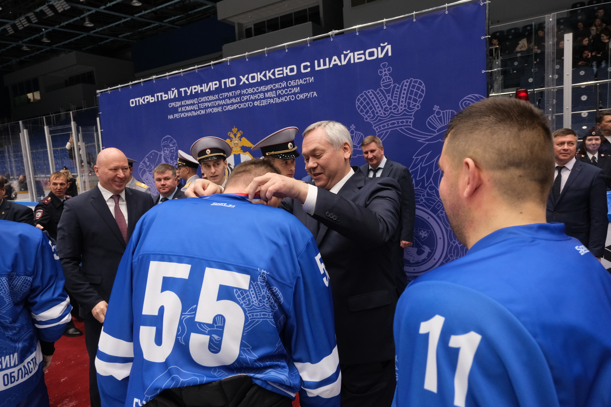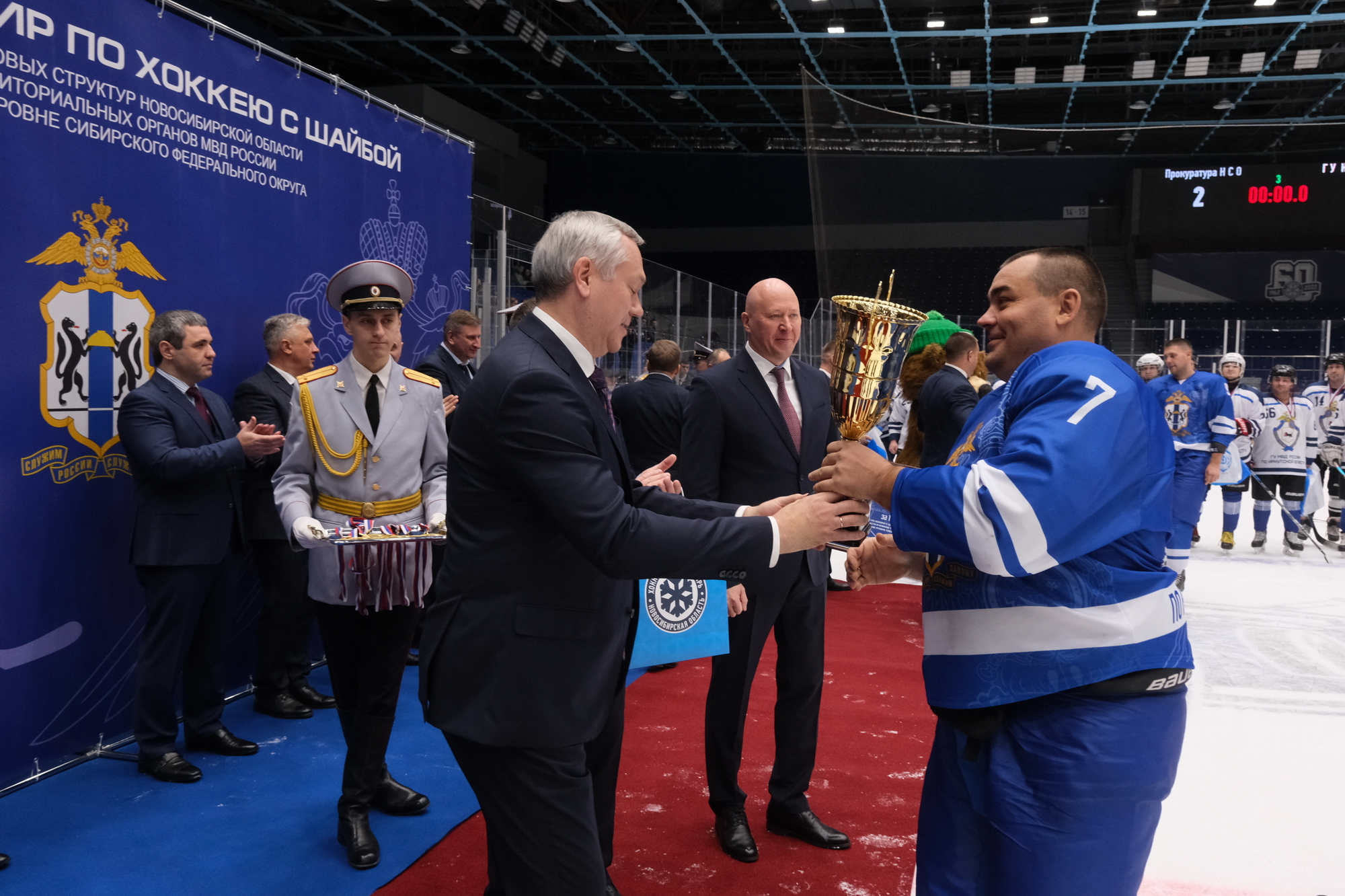 Андрей Травников и Андрей Кульков поздравили победителей турнира по хоккею с шайбой среди команд силовых структур