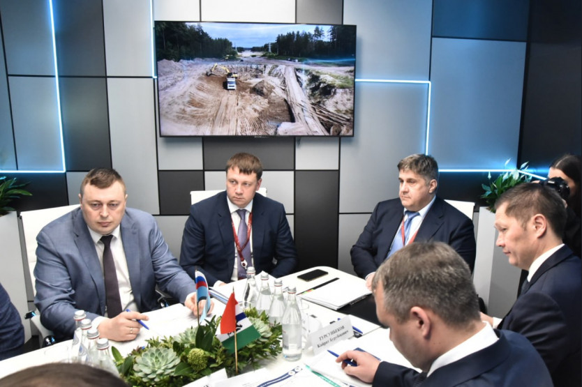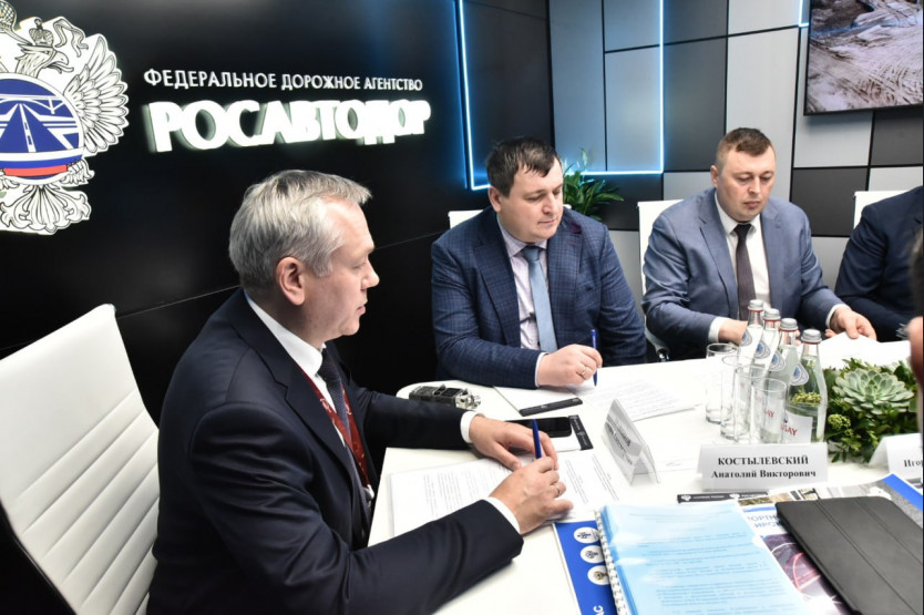 Губернатор Андрей Травников и руководитель Федерального дорожного агентства Роман Новиков провели рабочую встречу на площадке Международного форума «Транспорт России».