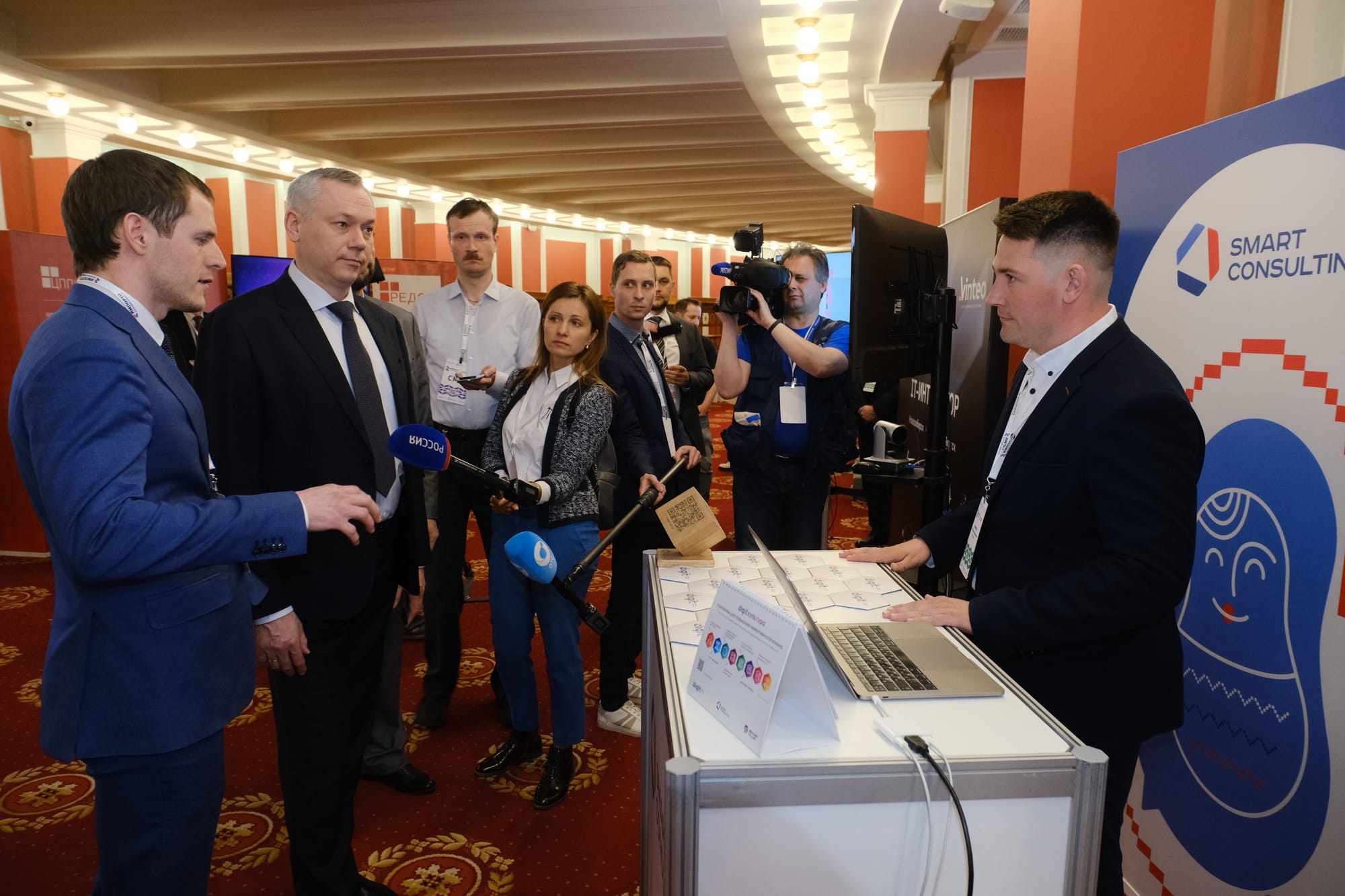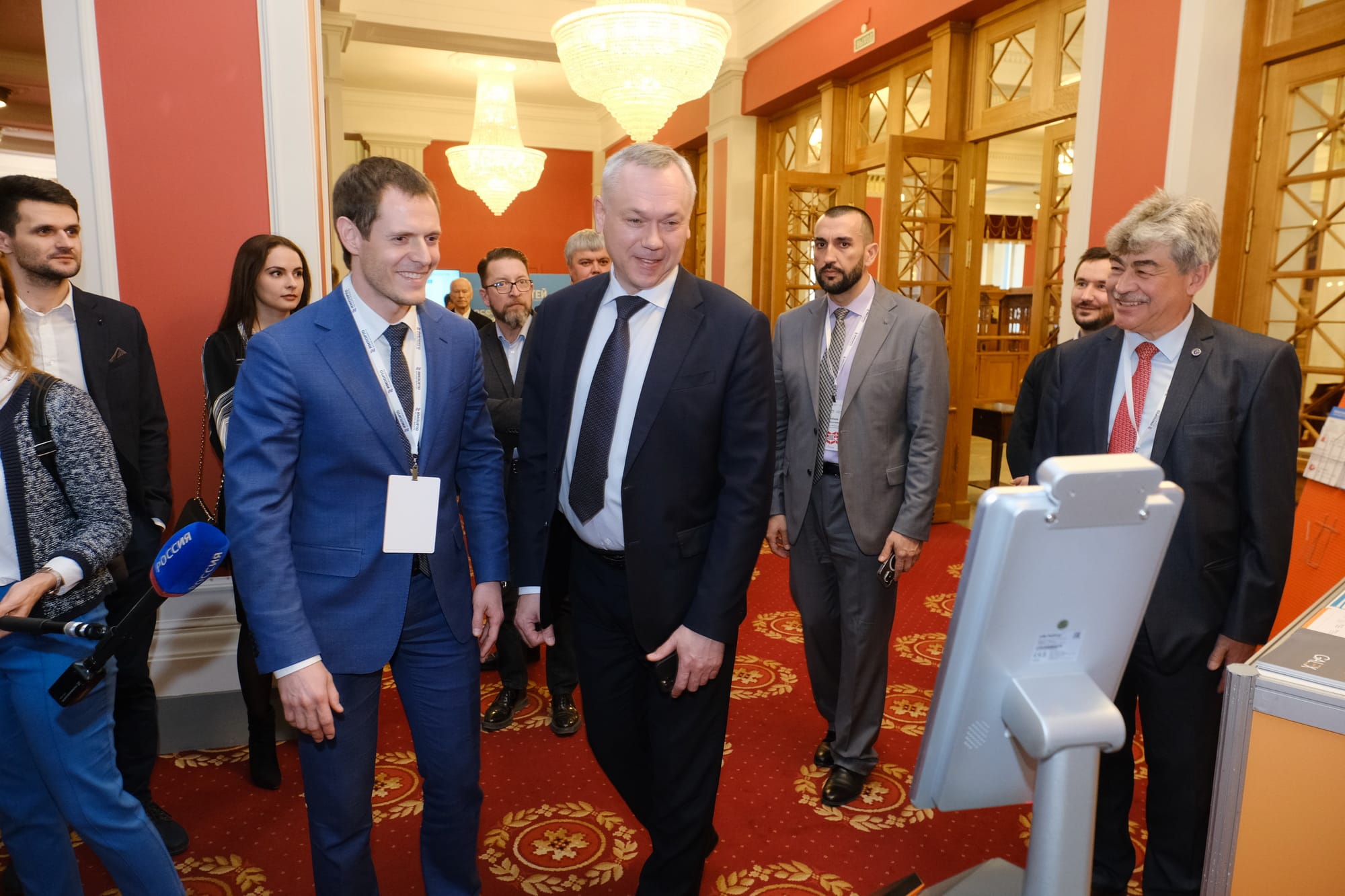 В холлах Новосибирского государственного академического театра оперы и балета глава региона осмотрел экспозицию выставки «Лидеры импортонезависимости», зону стартапов «Инновационное пространство Сибири», принял участие в пленарном заседании «Россия сосредотачивается». Участникам были зачитаны приветственные обращения заместителя председателя правительства Российской Федерации Дмитрия Чернышенко и министра цифрового развития, связи и массовых коммуникаций Российской Федерации Максута Шадаева.