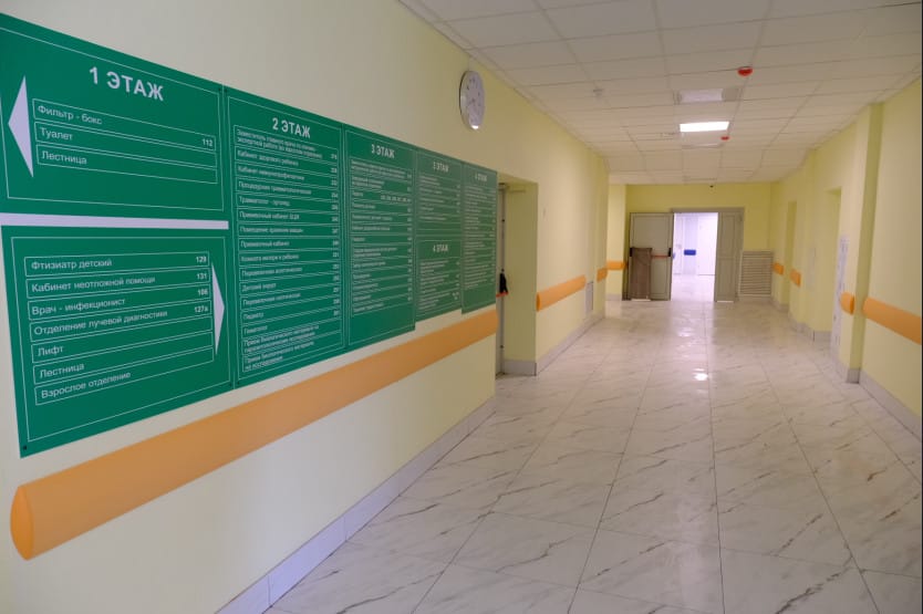 Здание находится на этапе сдачи заказчику. В помещениях устанавливается высокотехнологичное современное отечественное оборудование – этот процесс завершится к 1 декабря. Поликлиника рассчитана на 750 посещений в смену, с детским отделением на 250 посещений. Объект сдаётся с опережением запланированного срока ввода в эксплуатацию. Изначально ввод был запланирован на 2024 год. Сейчас ведутся приёмо-сдаточные работы, оснащение медицинским оборудованием и мебелью.