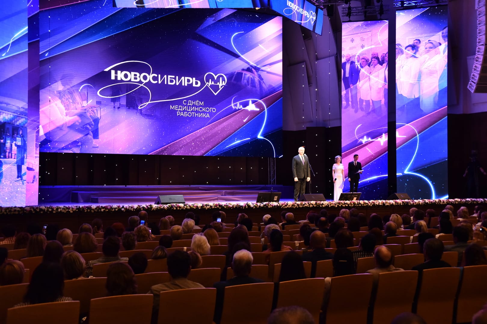 Губернатор Андрей Травников, Председатель Законодательного Собрания Новосибирской области Андрей Шимкив, Сенатор Российской Федерации Владимир Городецкий, Митрополит Новосибирский и Бердский Никодим поздравили медицинских работников Новосибирской области с наступающим профессиональным праздником.