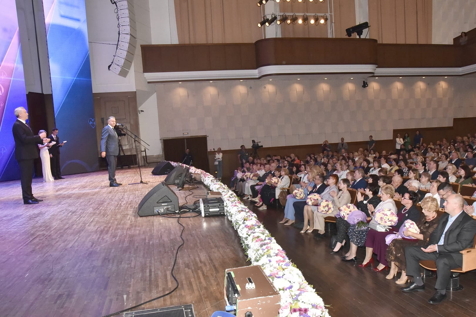 Обращаясь к собравшимся в Государственном концертном зале имени Каца медикам, Губернатор поблагодарил всех за то, что при напряжённой ежедневной работе медицинские работники всегда находят для своих пациентов слова искренней поддержки.