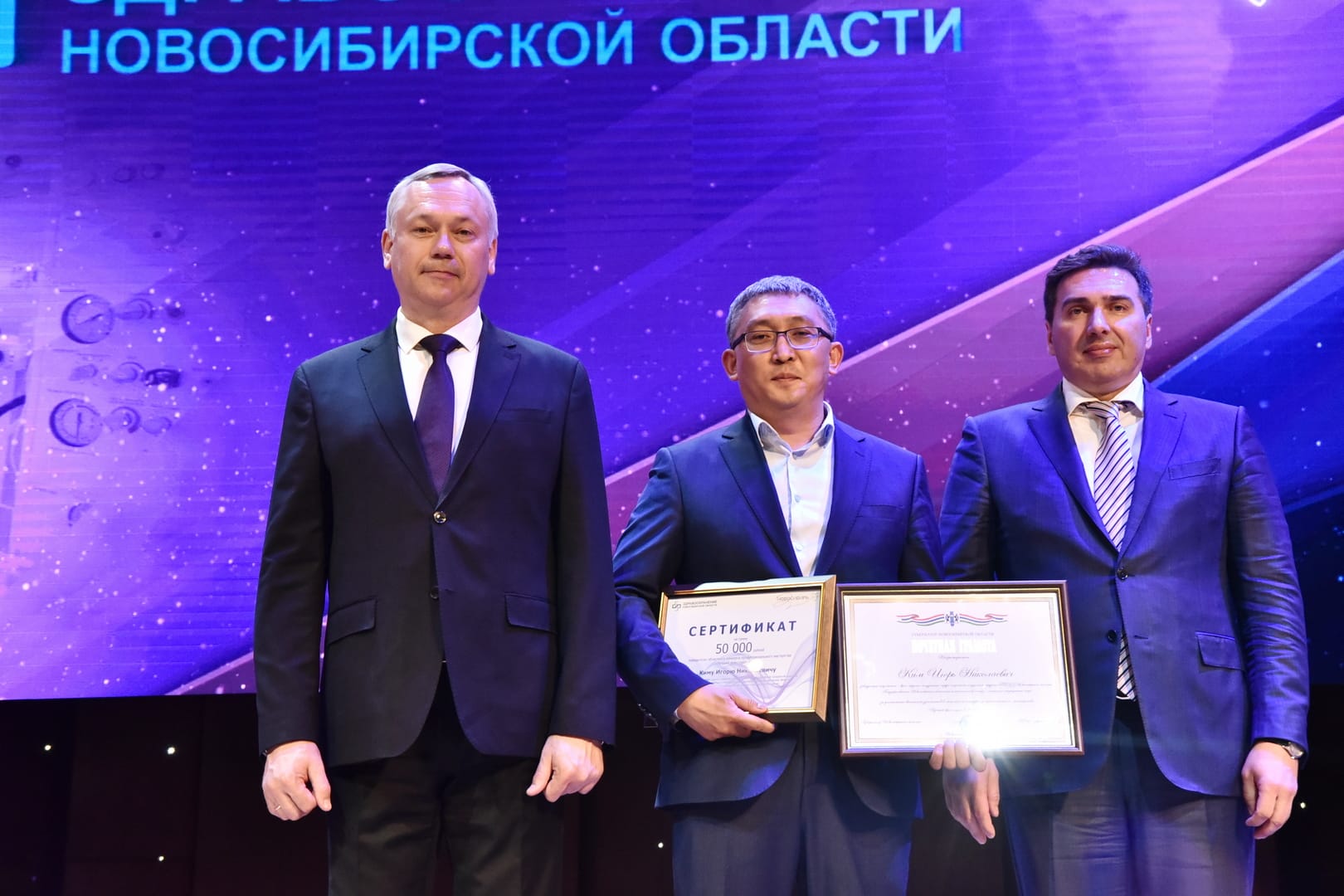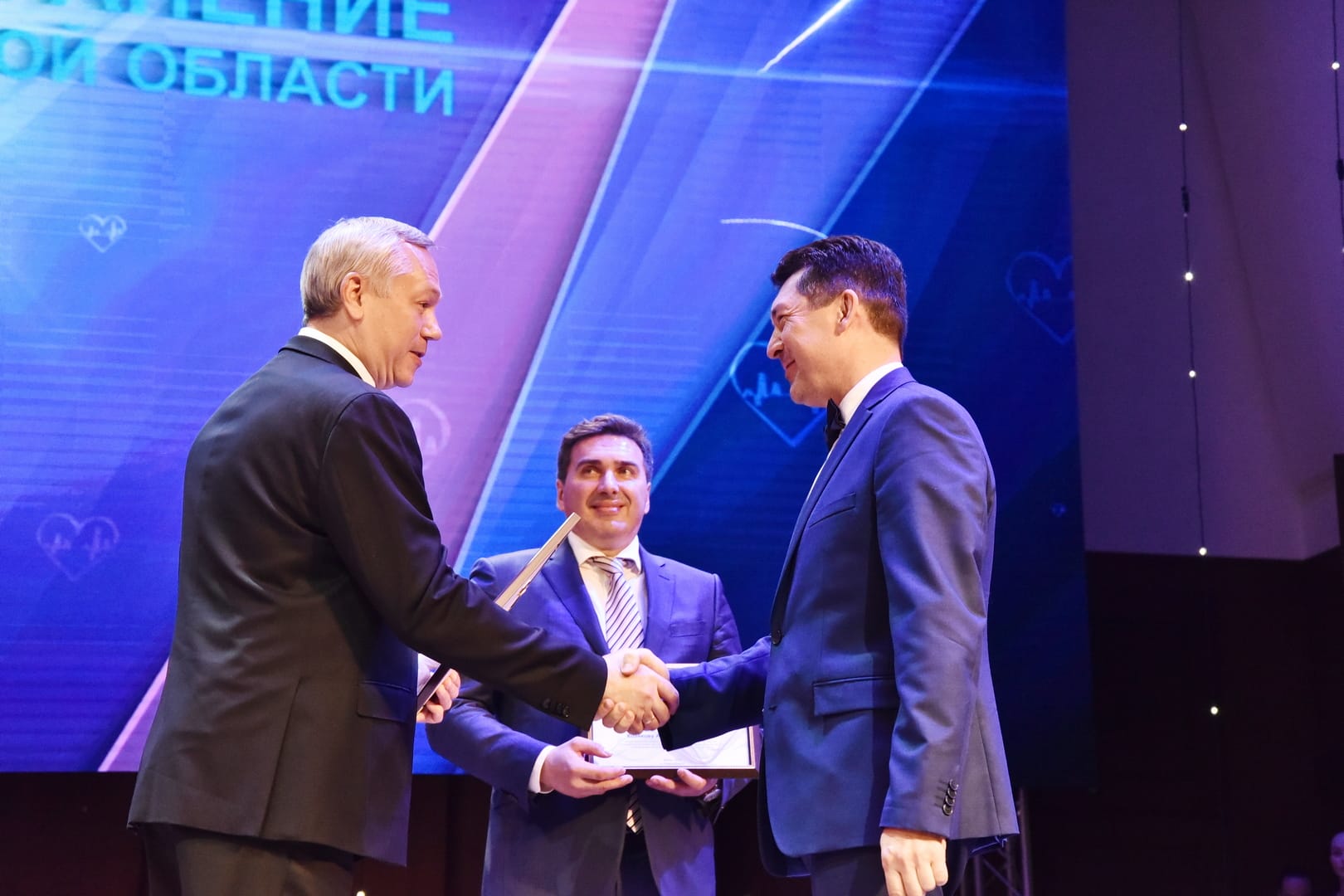 Выдающимся профессионалам отрасли Андрей Травников вручил государственные награды Российской Федерации, а вместе с Андреем Шимкивом – свидетельства о присвоении почётных званий «Заслуженный работник здравоохранения Новосибирской области».