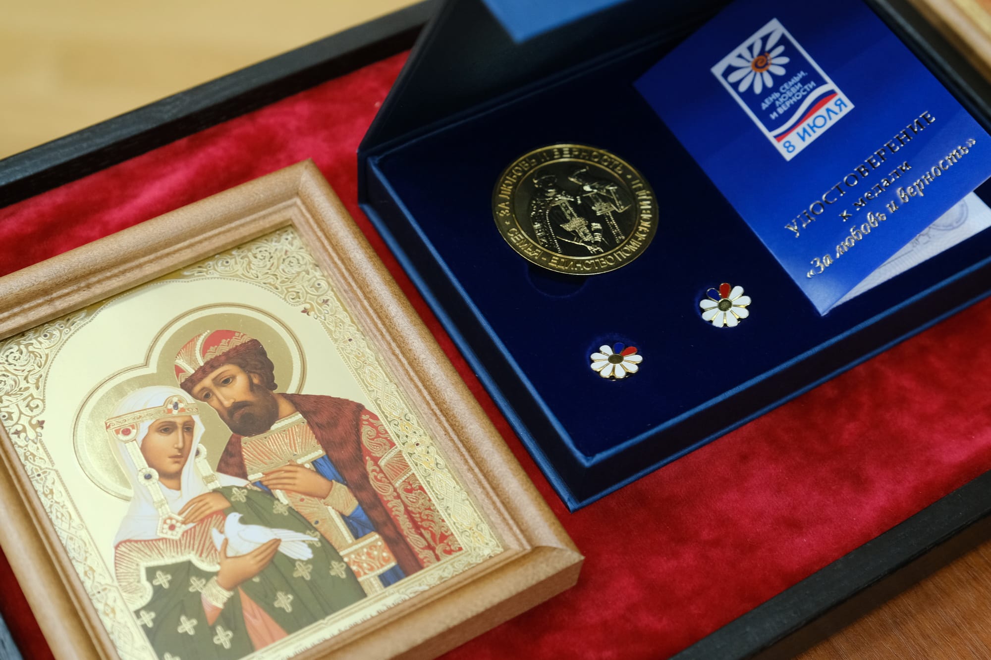 Празднование Дня семьи, любви и верности в России, а также общественная награда – медаль «За любовь и верность» – учреждены по инициативе Светланы Медведевой, председателя Фонда социально-культурных инициатив (г. Москва) в 2008 году. Ежегодно к 8 июля медаль вручается супружеским парам, зарегистрировавшим заключение брака не менее 25-ти лет назад, получившим известность среди сограждан крепостью семейных устоев и воспитавшим детей достойными гражданами (не более 70 медалей для каждого субъекта Российской Федерации в год). Каждая семейная пара, представленная к награде, получает подарок от Правительства Новосибирской области.