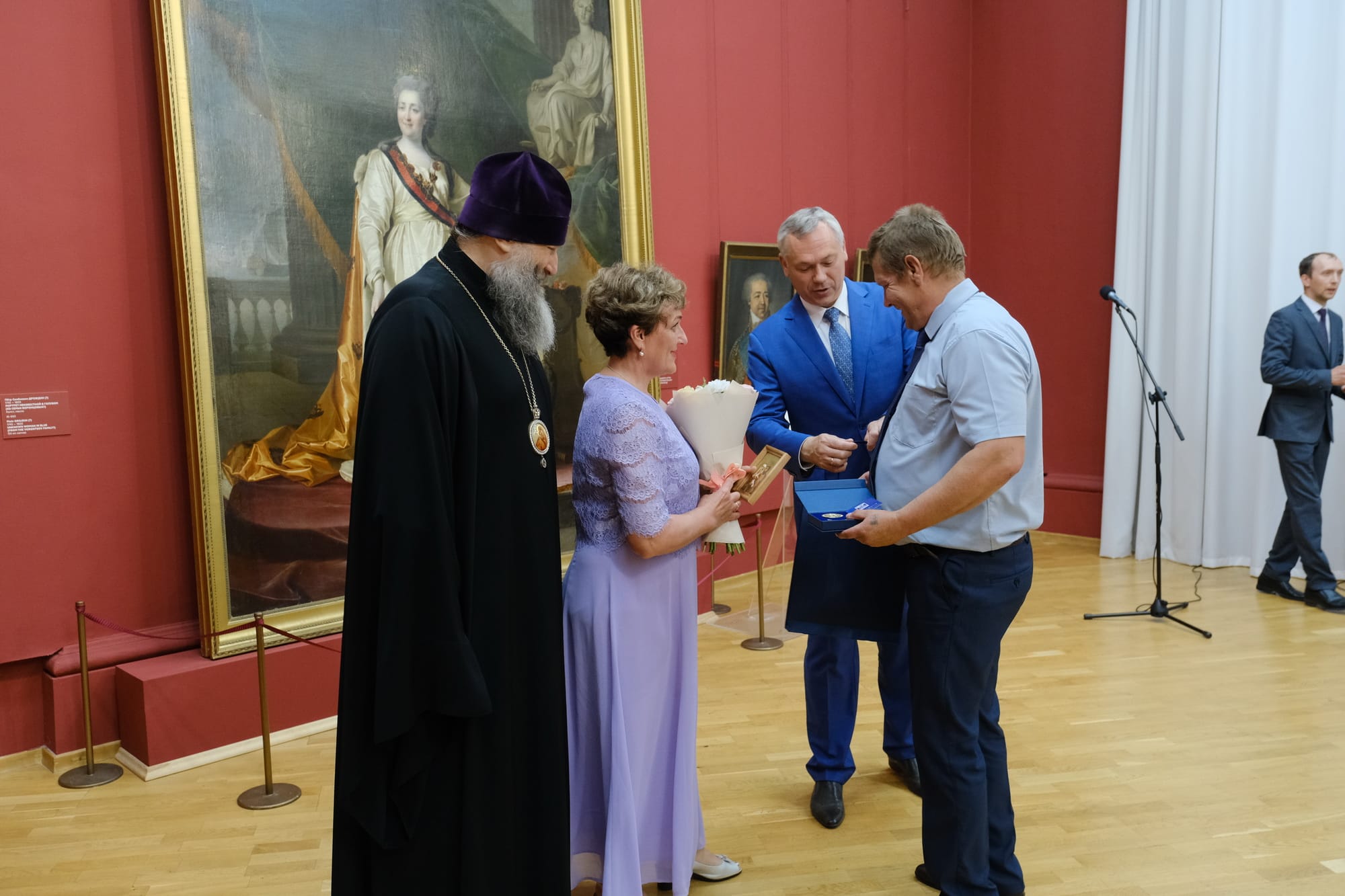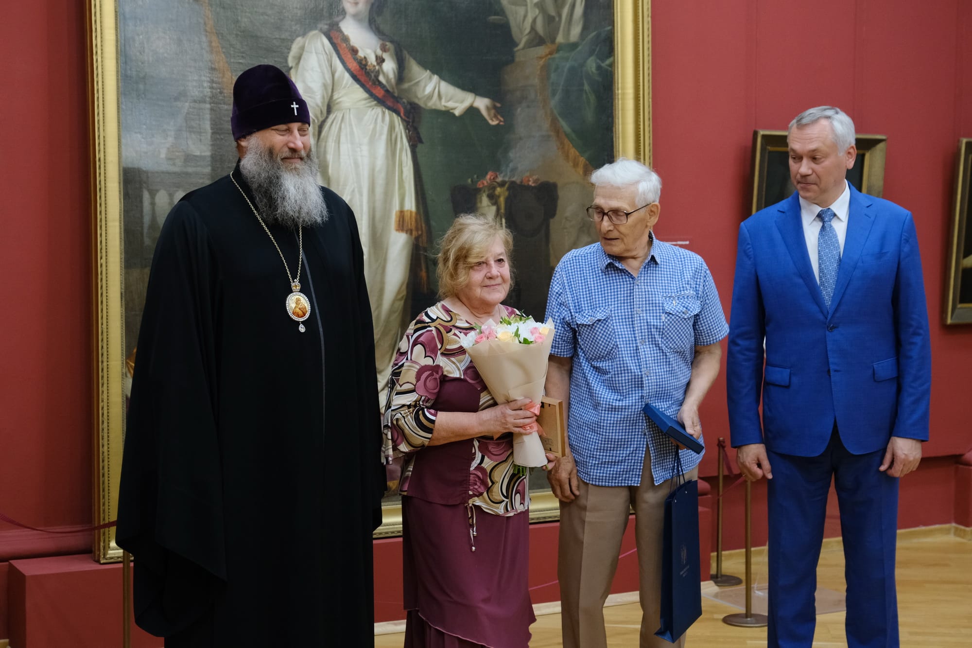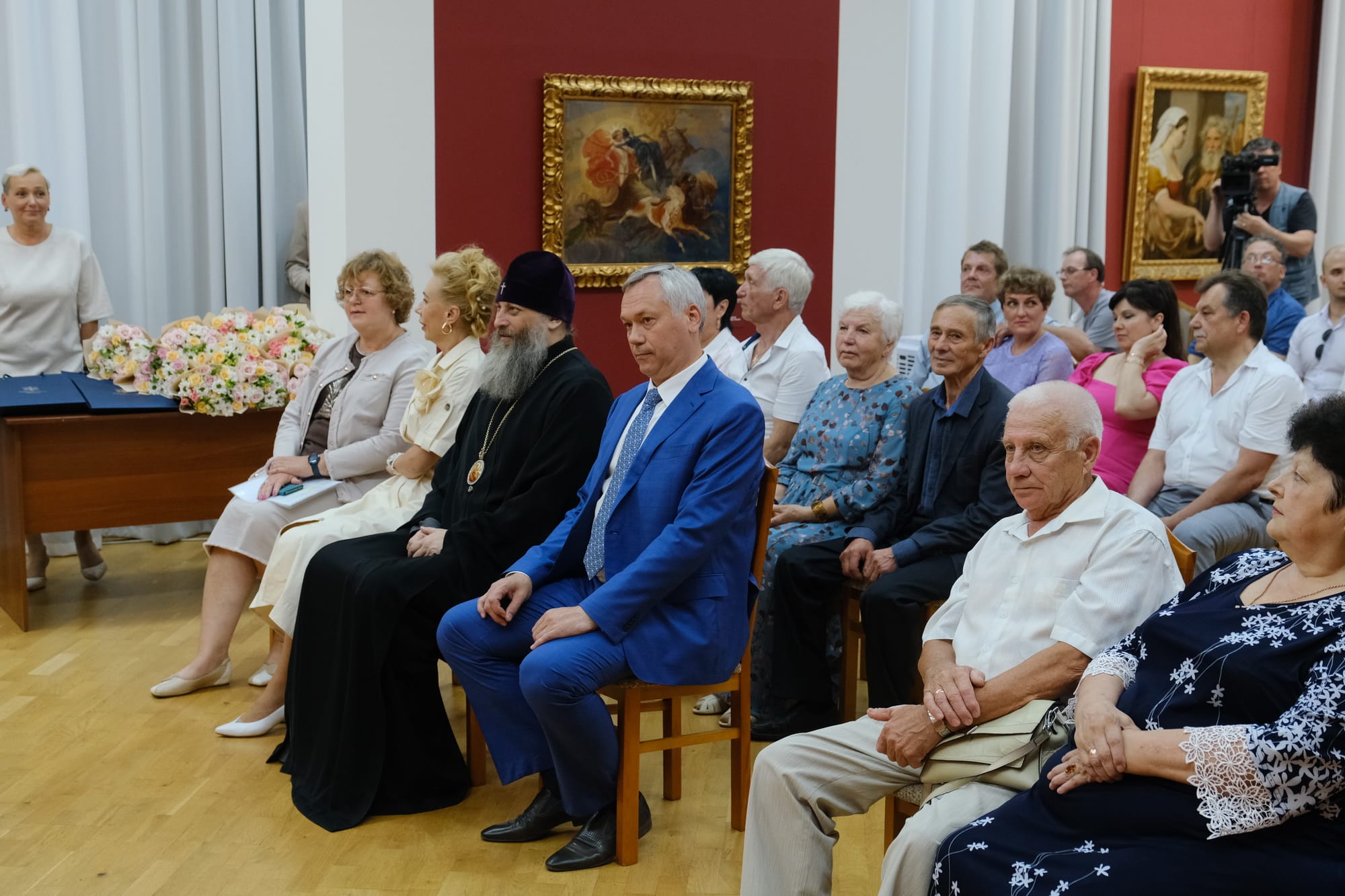 Глава региона в рамках празднования Дня семьи, любви и верности вместе с Митрополитом Новосибирским и Бердским Никодимом вручил медали и памятные подарки десяти супружеским парам, чей семейный стаж насчитывает как минимум 33 года.