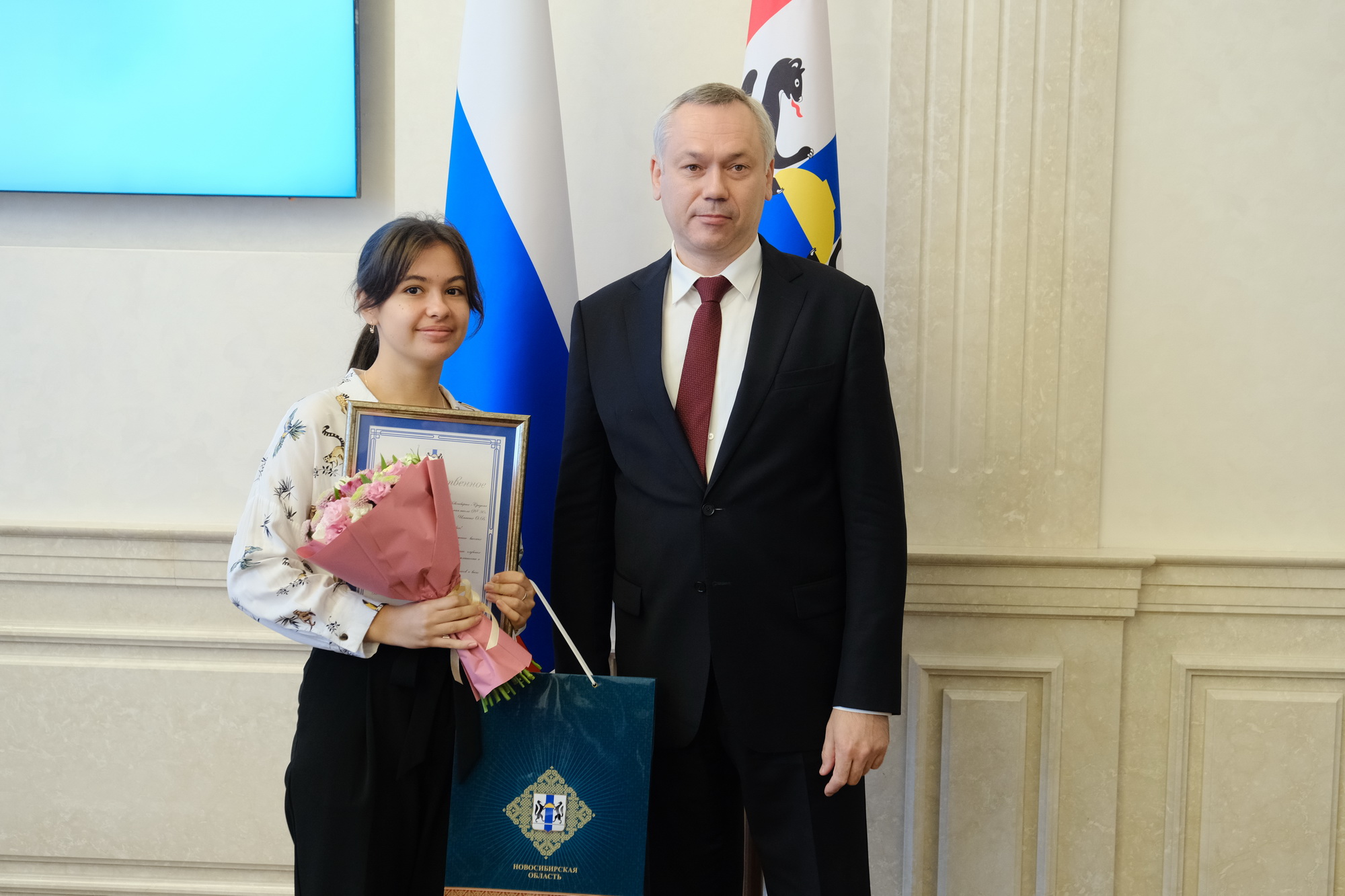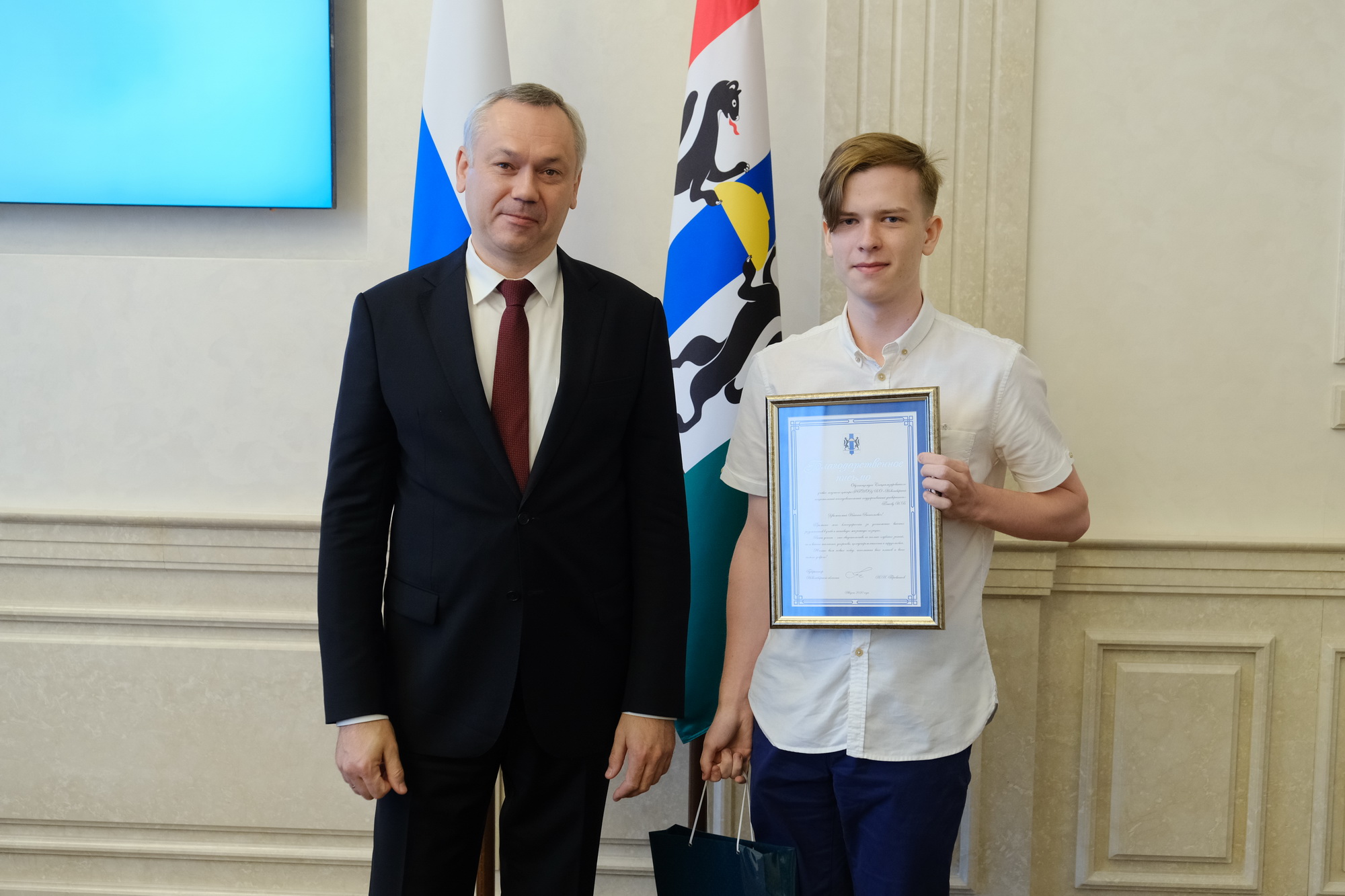 Андрей Травников вручил Благодарственные письма губернатора Новосибирской области и памятные знаки Новосибирской области «100 баллов по ЕГЭ» 12-ти мультистобалльникам 2020 года; Благодарственные письма Губернатора Новосибирской области – педагогам «Золотой дюжины учителей 2020 года», подготовившим за время своей педагогической деятельности наибольшее количество одарённых и талантливых выпускников, получивших по результатам ЕГЭ 100 баллов и ставших победителями и призёрами олимпиад школьников, конкурсов и турниров.