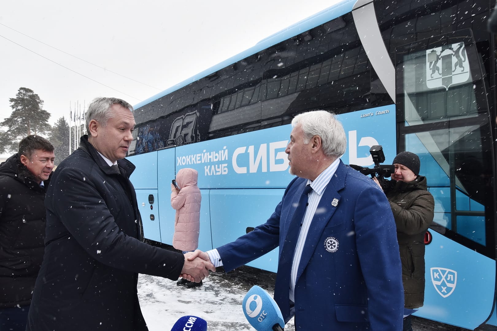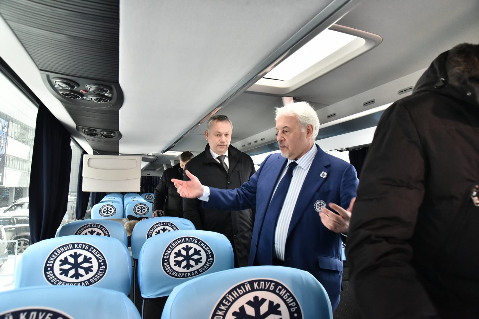 Генеральный менеджер команды Кирилл Фастовский, главный тренер Андрей Мартемьянов, капитан ХК «Сибирь» Евгений Чесалин выразили Губернатору слова благодарности за всестороннее внимание к главной новосибирской хоккейной команде. В том числе – за подарок к 60-летию клуба – новый автобус для команды. Сверхсовременный автобус уже раскрашен в фирменные цвета клуба и украшен символикой «Сибири».