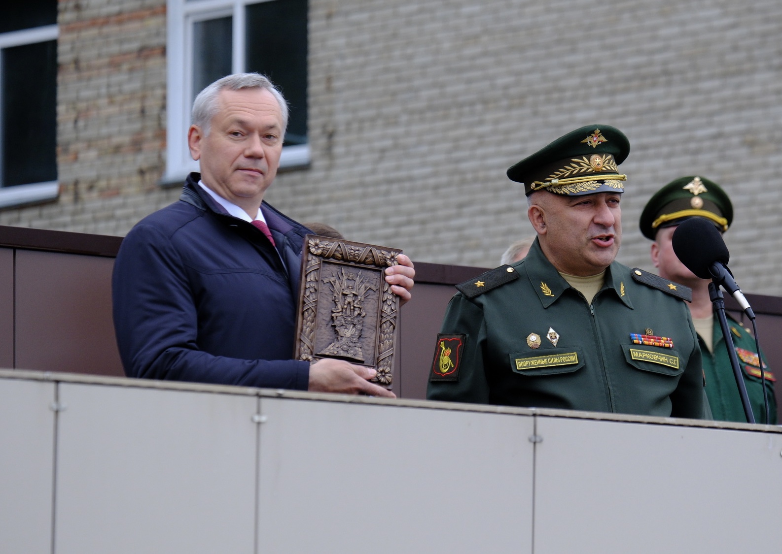 «Уважаемые преподаватели, курсанты! Поздравляю вас с началом нового учебного года! Череда торжественных мероприятий сегодняшнего праздничного дня начинается с построения и митинга в Новосибирском высшем военном командном ордена Жукова училище, как подтверждение того, что вы, военный вуз, готовы каждую минуту учебного времени использовать для подготовки будущих командиров.