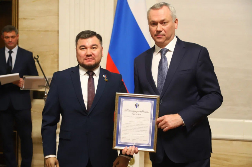 За самоотверженный труд по созданию и развитию движения поддержки воинов Отечества и членов их семей Андрей Травников вручил Благодарственные письма Губернатора Новосибирской области.