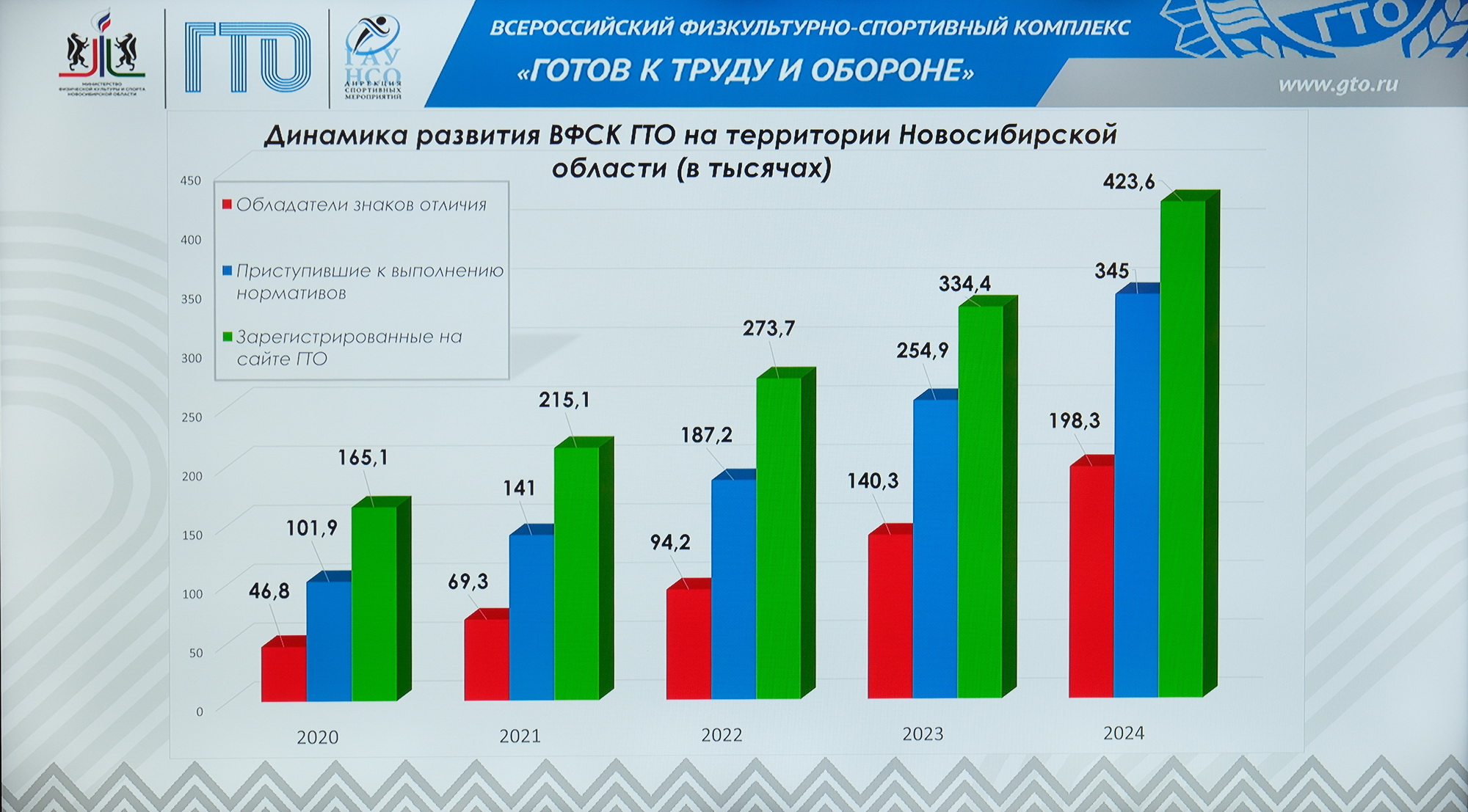 Президент России Владимир Владимирович Путин поставил задачу – до 2030 года 70% населения должны заниматься спортом. Благодаря своей доступности, массовости и мотивационному характеру одним из эффективных инструментов стимулирования населения к занятиям физической культурой и спортом является участие в выполнении нормативов Всероссийского физкультурно-спортивного комплекса «Готов к труду и обороне» (ГТО). В Новосибирской области к концу 2024 года уже достигнута доля регулярно занимающихся спортом – свыше 60%.