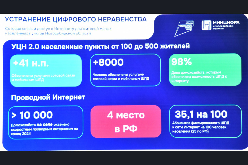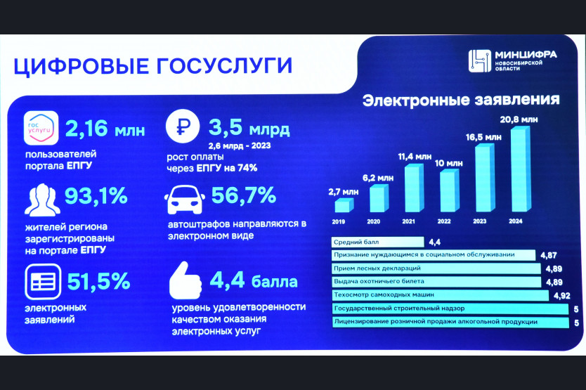 В числе задач, стоящих перед министерством цифрового развития и связи Новосибирской области: импортозамещение устаревшего сетевого и серверного оборудования, автоматизированных рабочих мест, программного обеспечения информационных систем; завершение реализации программы по устранению цифрового неравенства; продолжение оснащения школ сетями вай-фай, системами видеонаблюдения за входными группами; оснащение планшетами отечественного производства учителей, бригад скорой помощи, врачей и социальных работников; развитие почтовой связи; дальнейшее развитие аппаратно-программного комплекса «Безопасный город»; завершение перевода на отечественное ПО системы 112; повышение уровня киберграмотности населения, наиболее уязвимых категорий граждан; внедрение принципов клиентоцентричности в работу органов власти в рамках федерального проекта «Государство для людей»; оптимизация массовых социально-значимых услуг, переход на их проактивное предоставление, уход от бумажных документов; внедрение новых сервисов «Карты жителя», сервиса «Госключ»; применение беспилотных авиационных систем для решения задач государственного управления; повсеместное внедрение технологий искусственного интеллекта.