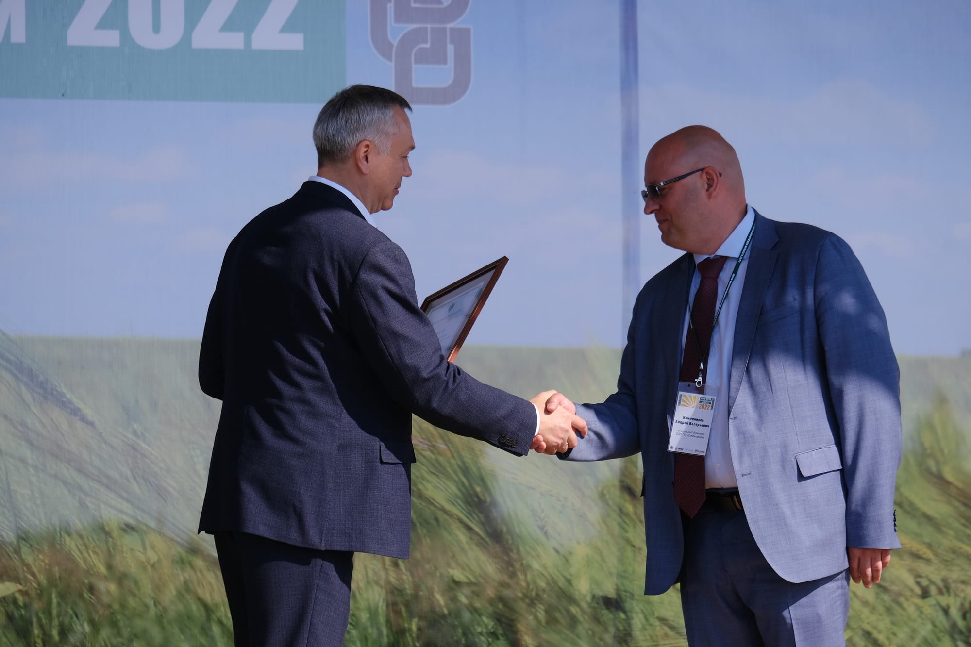 Губернатор Андрей Травников также приветствовал участников и гостей традиционного межрегионального мероприятия «День поля — 2022» и вручил награды за высокие показатели в развитии агропромышленной сферы региона.