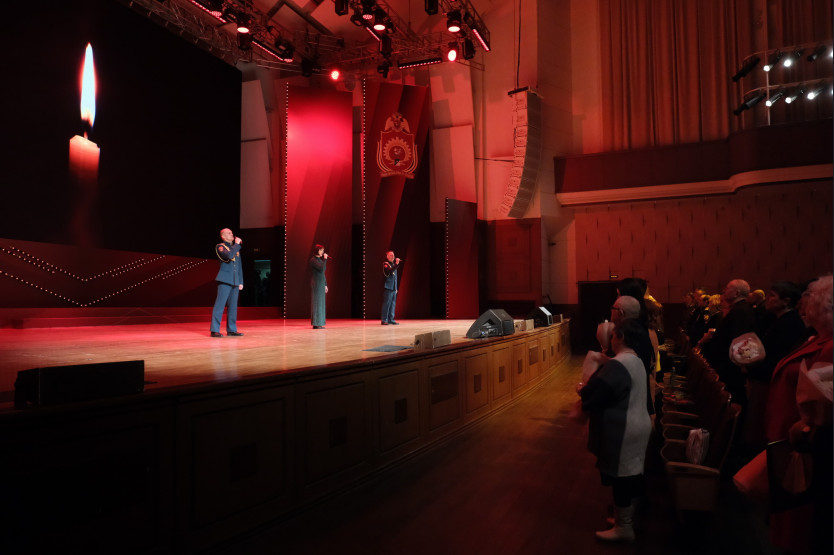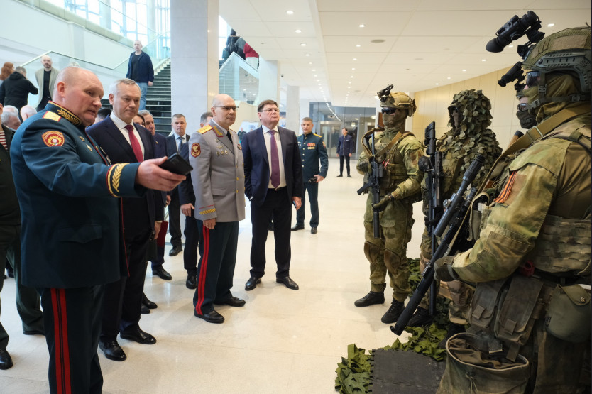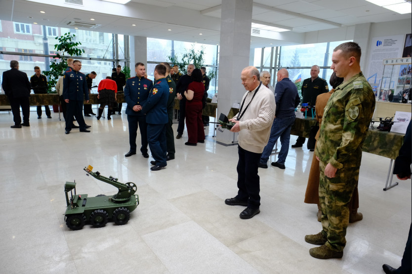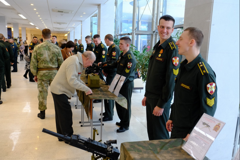 Мероприятие состоялось в Государственном концертном зале имени Каца. В фойе филармонии Губернатор осмотрел экспозиции выставки: боевых знамён вуза, военной формы одежды, современных и исторических образцов вооружения, робототехнических комплексов и образцов БПЛА, а также экспозицию, посвящённую Героям России – выпускникам института.