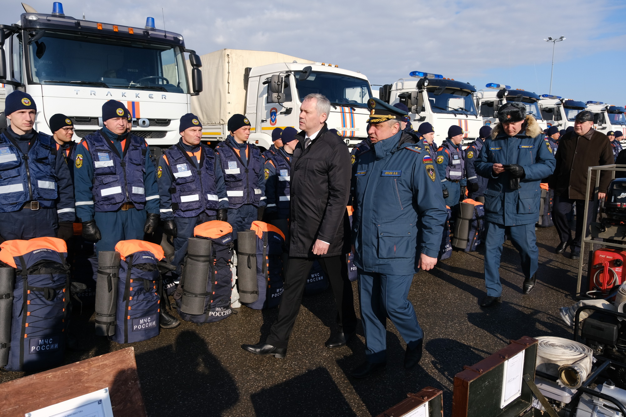 Губернатор Андрей Травников и начальник Главного управления МЧС России по Новосибирской области Виктор Орлов провели 13 апреля смотр сил и средств, предназначенных для реагирования на возникновение чрезвычайных ситуаций, обусловленных сезонными рисками. Мероприятие прошло на площадке возле МВК «Новосибирск Экспоцентр».