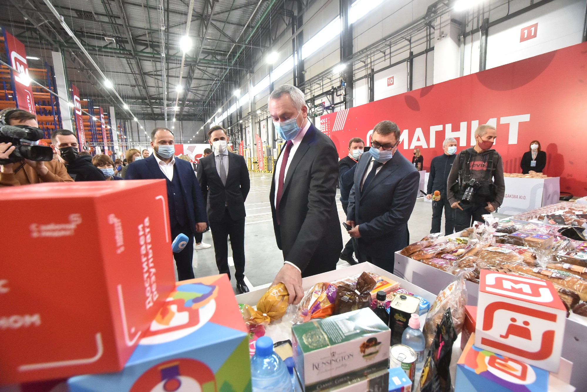 Андрей Травников поздравил всех коллег и партнёров с очередным крупным логистическим инвестиционным проектом, реализованным на территории региона. «По своему расположению, по возможностям транспортной инфраструктуры Новосибирск – это торговые ворота всей Сибири. Современная торговля – это не прежние базы снабжения и продовольственные склады. Это – современные производства, которые меняются на глазах благодаря развитию логистики, цифровым решениям, прогрессивным управленческим механизмам. Сегодня мы участвуем в открытии логистического центра крупнейшей торговой сети страны. Новосибирская область находится в авангарде трансформации современной логистики, торговли, распределения товаров, необходимых для жителей огромных территорий. Вместе с автотранспортным предприятием новый центр – это почти тысяча новых рабочих мест. Компания «Магнит», активно развиваясь на территории Новосибирской области и соседних регионов, даёт толчок к развитию наших производителей – в первую очередь, сельхозпроизводителей, переработчиков. Только за два года доля местных товаров на полках магазинов «Магнит» выросла с 14 до 32 процентов, а хлеба и хлебобулочных изделий – почти 100 процентов, молока и мяса птицы – до 50 процентов. На полках магазинов «Магнит» всегда можно найти товары знакомых и любимых новосибирцами производителей. Уверен, наше долгосрочное партнёрство продолжится и в дальнейшем», – подчеркнул губернатор.