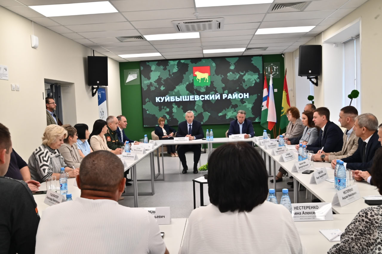 Губернатор Андрей Травников и Председатель Законодательного Собрания Новосибирской области Андрей Шимкив в ходе рабочей поездки в Куйбышевский район в режиме живого диалога пообщались с жителями и отдельно – с участниками специальной военной операции и членами их семей.