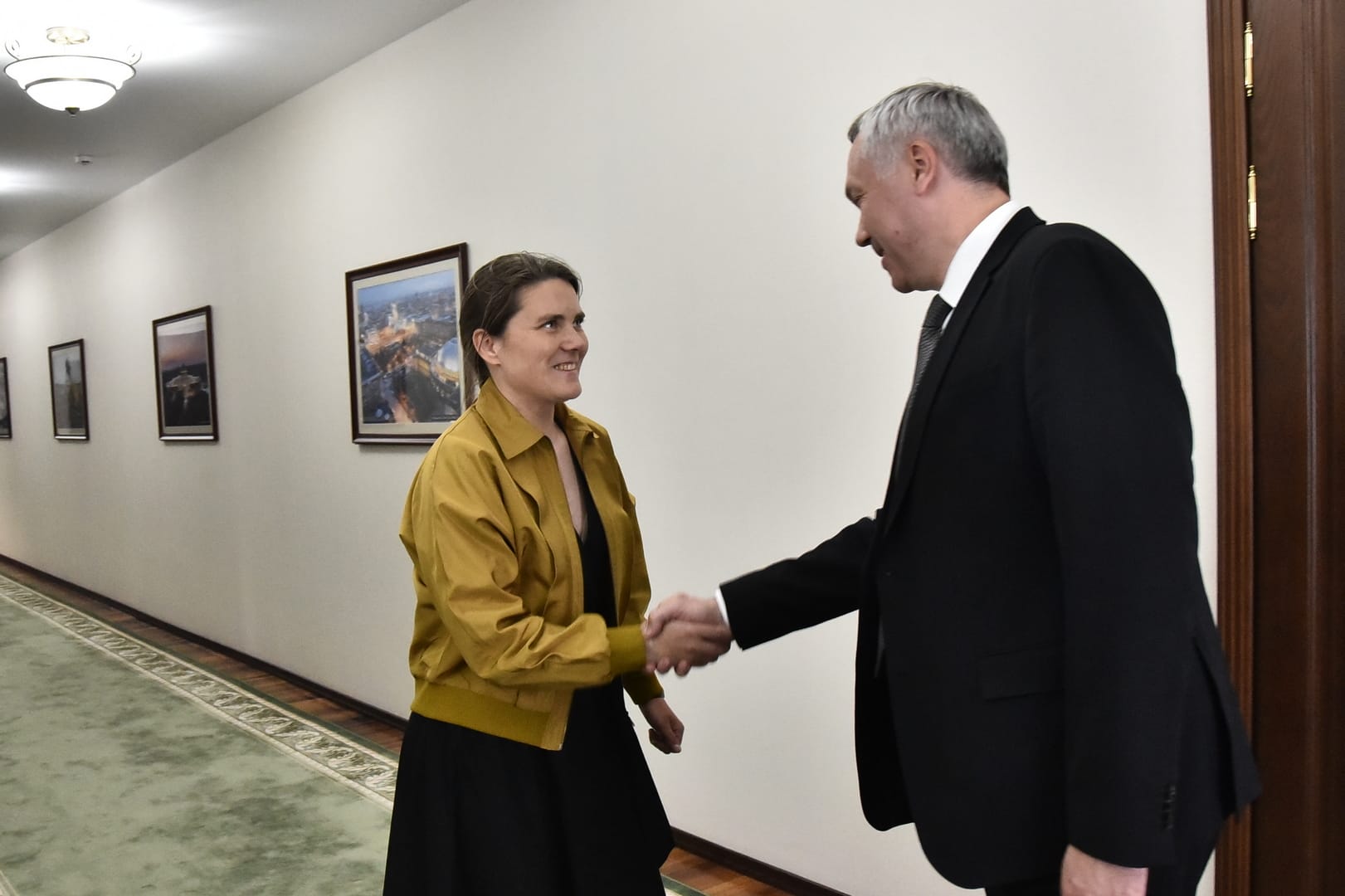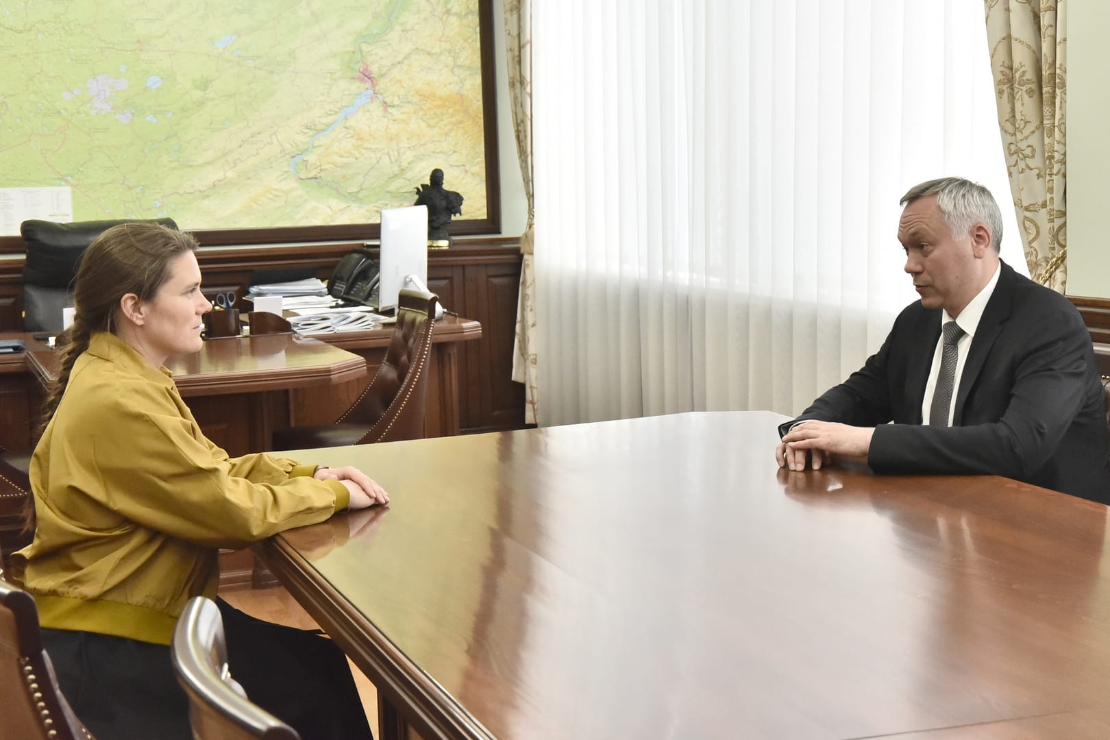 «Новосибирск — авиационный город. Здесь авиацией пропитано просто всё. Поэтому вы для нас всех теперь героиня и, самое главное, путеводная звезда. Знаете, когда Александр Александрович Карелин завоевал «золото», сколько мальчишек пошло заниматься борьбой. Я уверен, что Новосибирск станет ещё более авиационным и космическим благодаря вашему полёту», — сказал Губернатор.