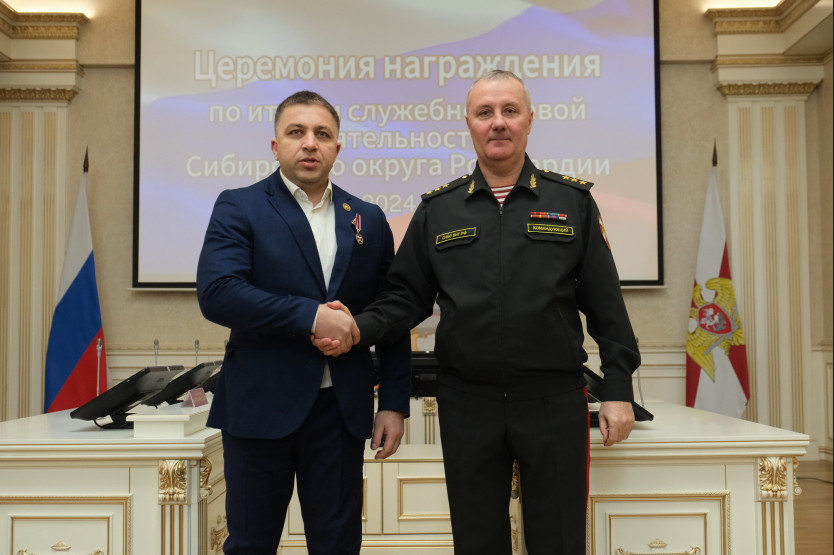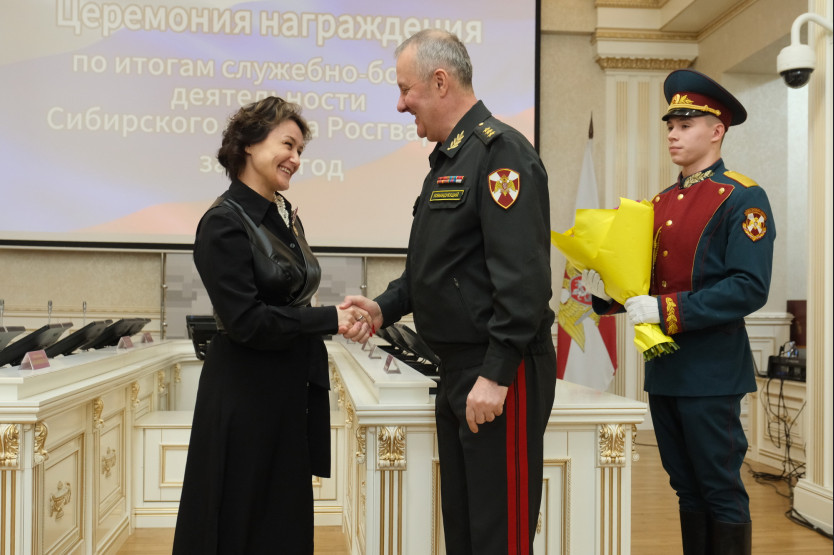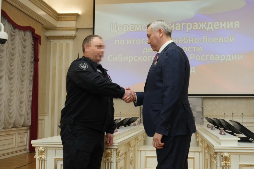 Губернатор принял участие в церемонии награждения по итогам служебно-боевой деятельности Сибирского округа войск национальной гвардии Российской Федерации за 2024-й год.