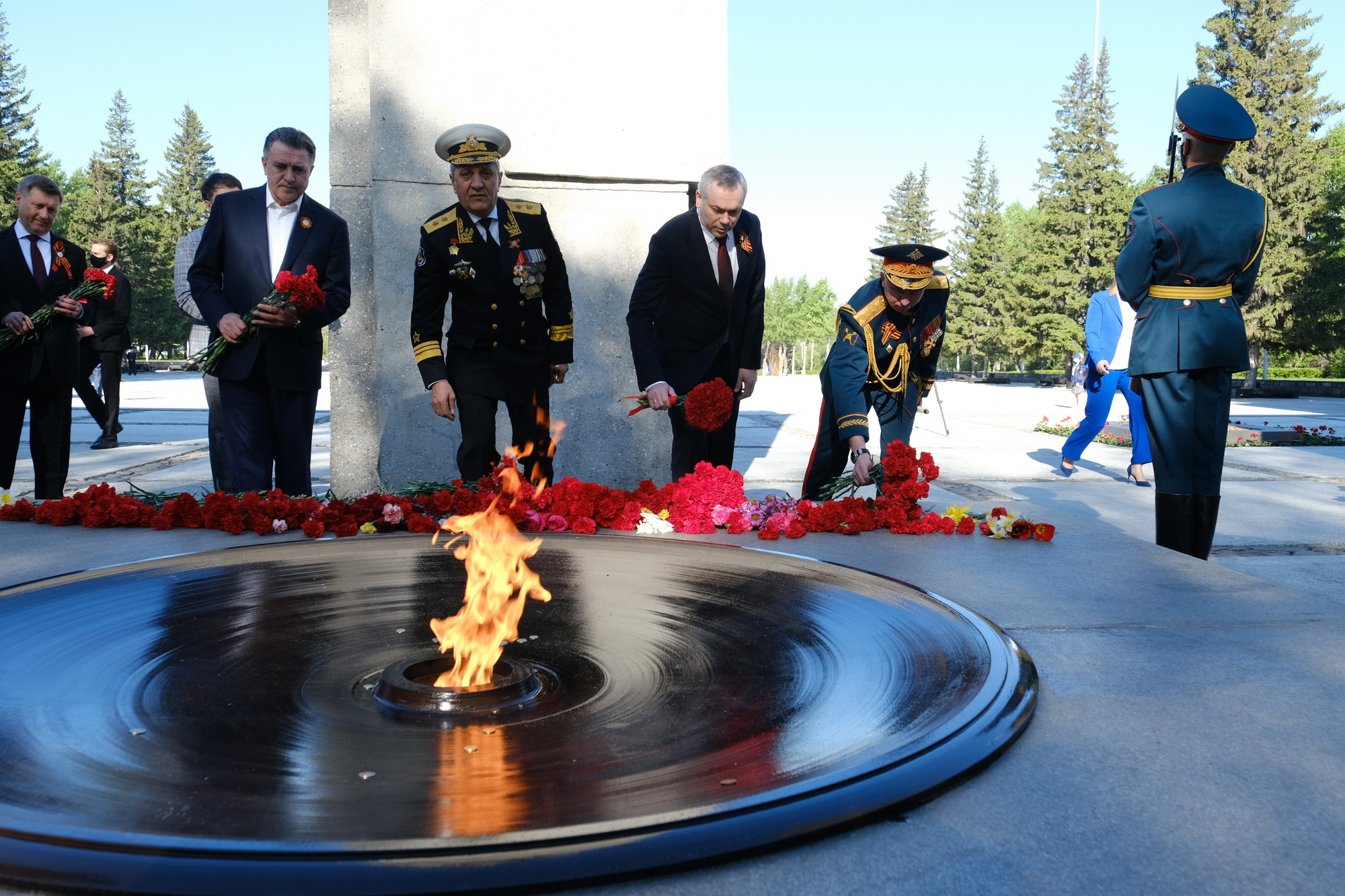 Андрей Травников в День Победы почтил память сибиряков, павших на полях сражений Великой Отечественной войны 1941-1945 гг., возложив цветы к Вечному огню на Монументе Славы.