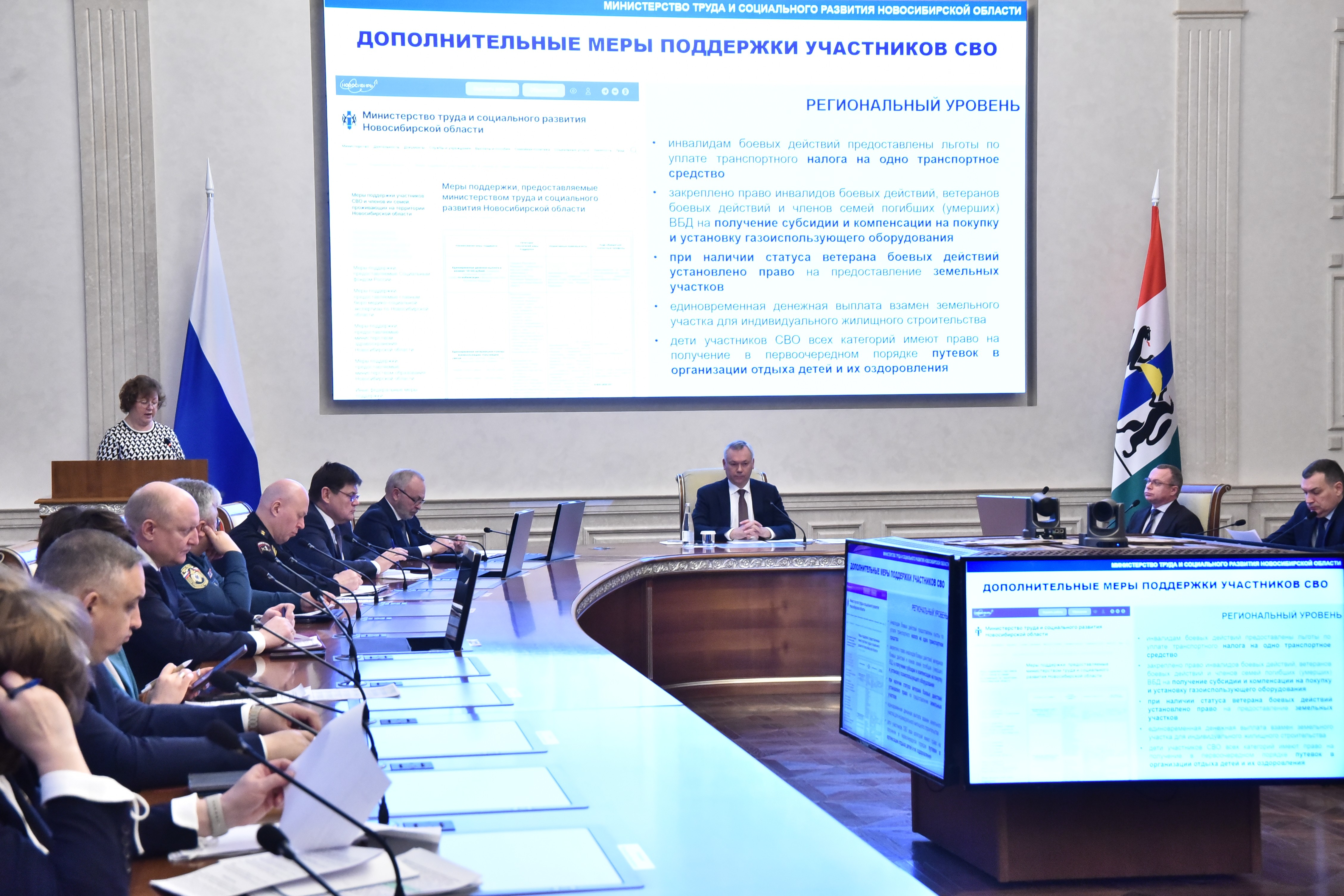 Министр труда и социального развития Новосибирской области Елена Бахарева доложила Губернатору о мерах поддержки участников специальной военной операции и членов их семей.