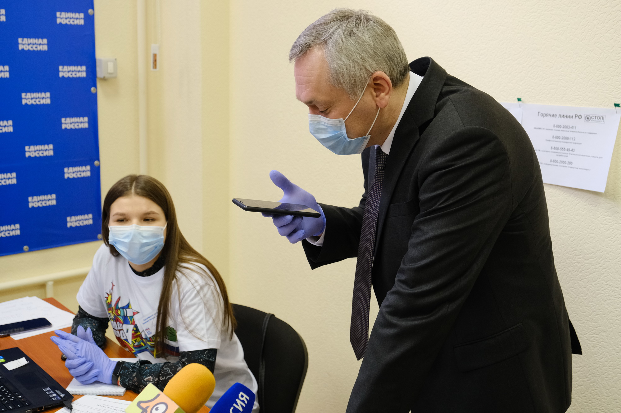 Андрей Травников посетил волонтерский центр «Единой России» по противодействию распространению коронавируса
