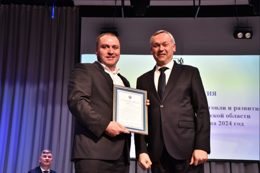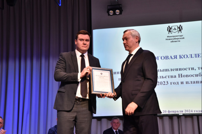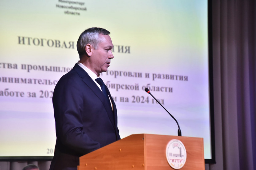 Андрей Травников поблагодарил за работу в 2023 году, успешном по всем показателям отрасли, коллектив министерства, руководителей и сотрудников предприятий промышленности и торговли, предпринимательское сообщество.
