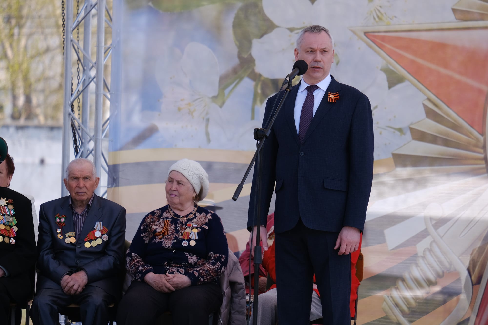 «День Победы – главный праздник нашей страны. Каждый год он наполняет душу светлым чувством уверенности и радости. В этом году мы встречаем его с особым чувством ответственности, с которым российские бойцы, как их деды и прадеды, стоят на защите нашей Родины. Мы видим сплочение сибиряков, всего российского общества, в поддержку Вооруженных Сил – тех самых ребят, которые выполняют непростую работу, исполняют свой воинский долг. Это искренне чувство, которое испытываешь, когда видишь выход колонны «Бессмертного полка», слышишь песню «День Победы». Это по-настоящему. Эстафета поколений – победителей и новых защитников Отечества, не прервется», — отметил во время митинга губернатор Андрей Травников.