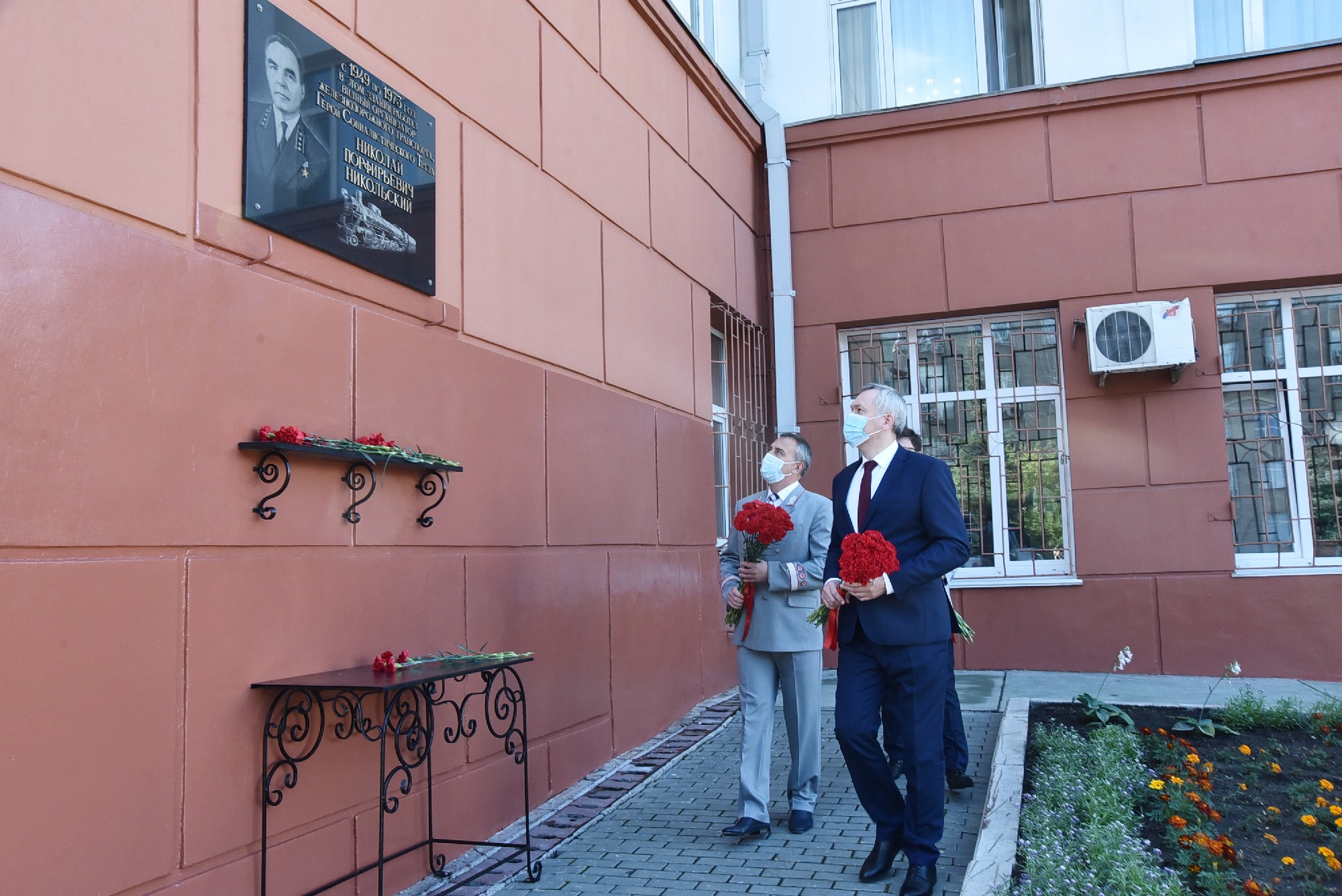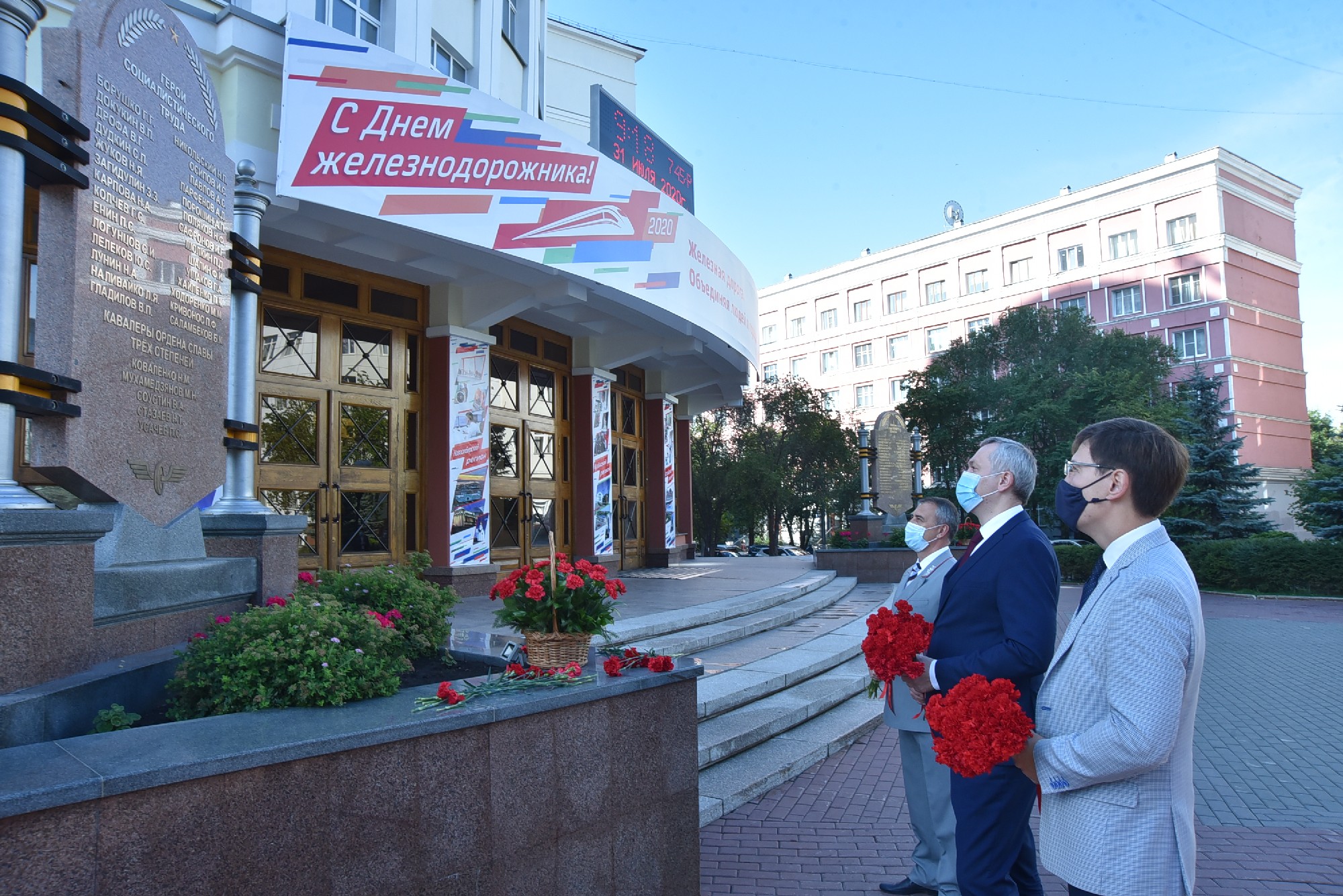 Губернатор Андрей Травников совместно с начальником Западно-Сибирской железной дороги Александром Грицаем возложил цветы к памятным стелам в сквере Героев-железнодорожников, памятной доске видному организатору железнодорожного транспорта, Герою Социалистического Труда Николаю Никольскому.
