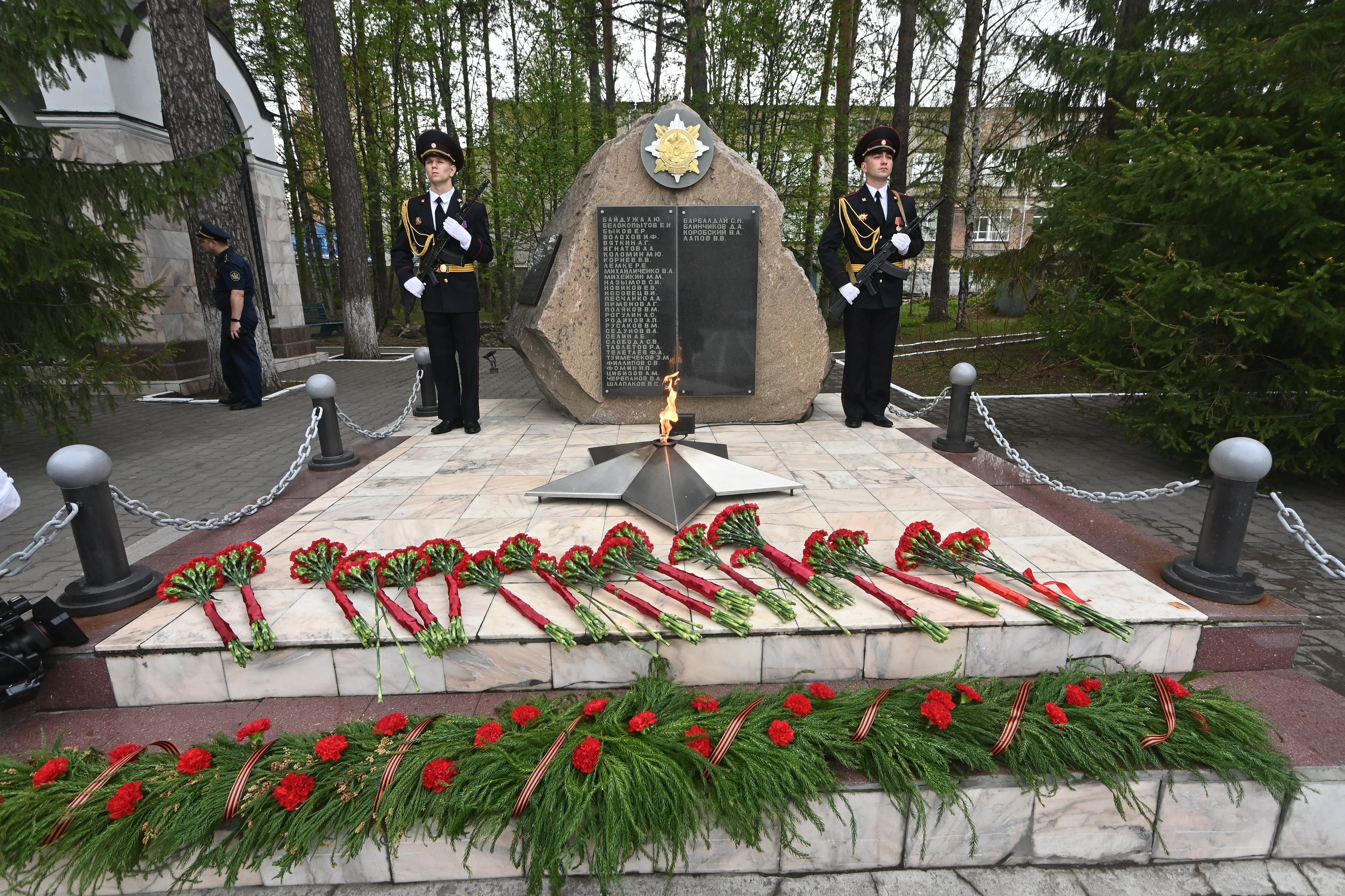 Андрей Травников, Андрей Кульков и другие официальные лица также возложили цветы к Мемориалу в честь сотрудников МВД, погибших при исполнении служебных обязанностей.