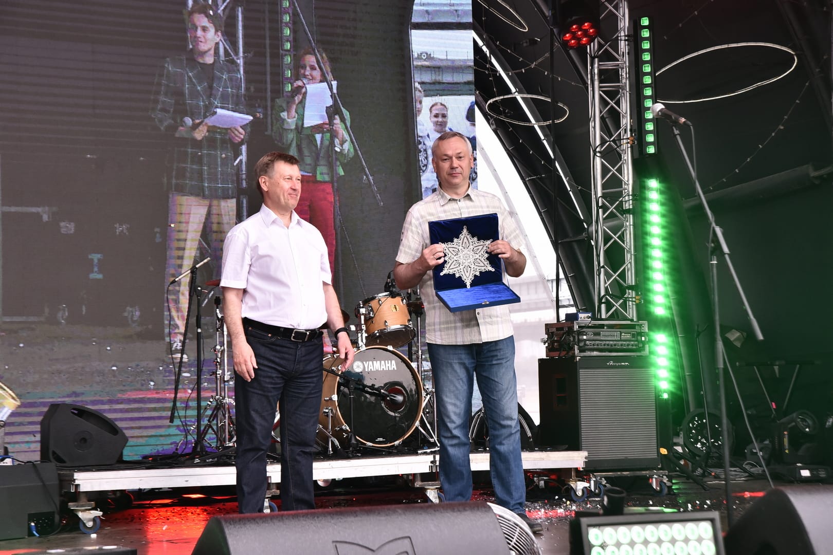 Также на главной сцене Михайловской набережной состоялась церемония вручения главе региона Снежинки – символа проекта «Новогодняя столица России». Кроме того, в День города Андрей Травников пообщался на городской набережной с участниками спортивного мероприятия «Сибирский предел», ознакомился с экспозицией Выставки Достижений Новосибирского хозяйства – ВДНХ «Люди дела» на площади им. Пименова.