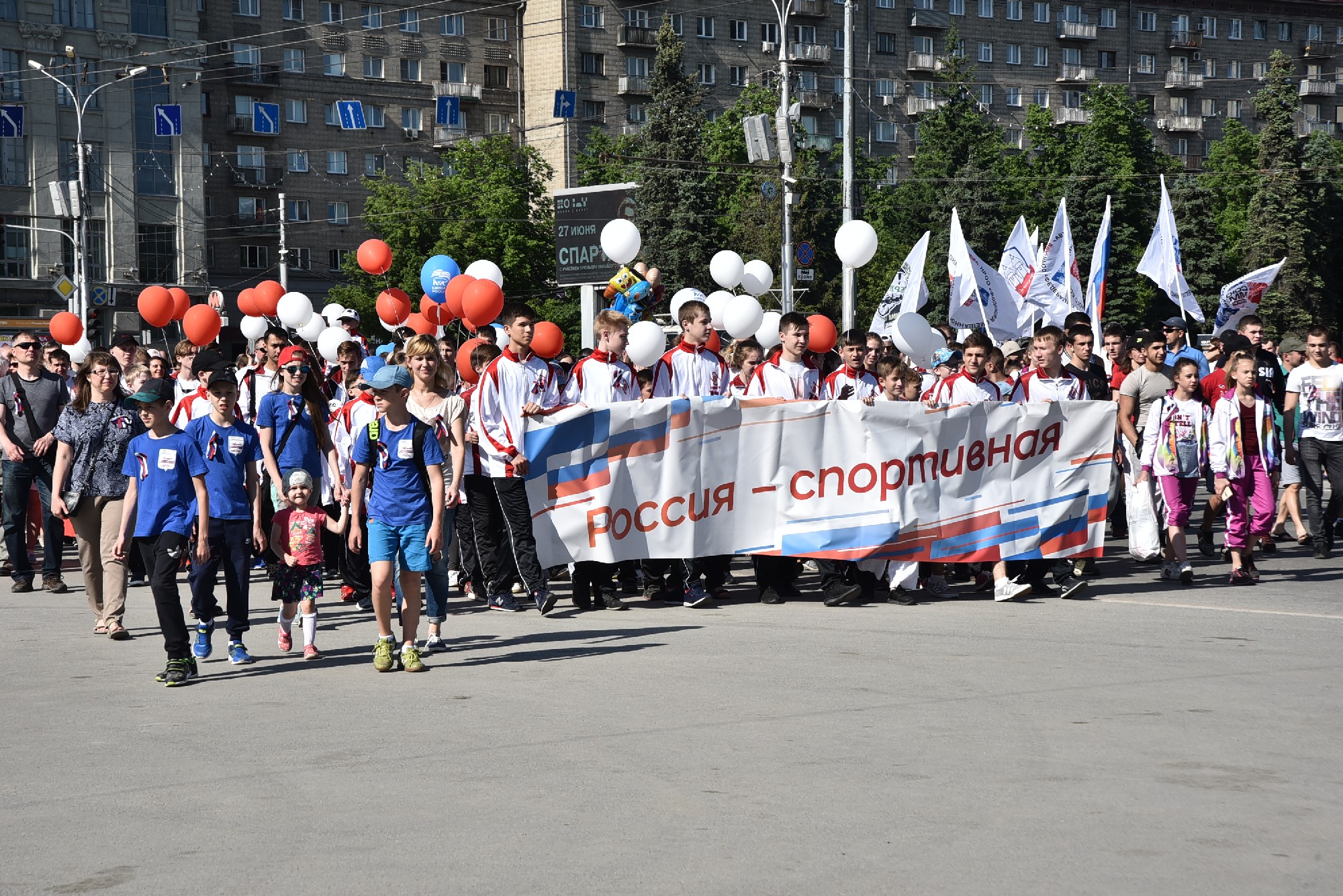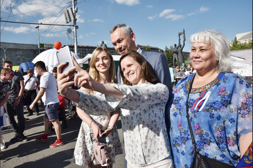 В День России в Новосибирске впервые отметили молодежным шествием под названием «Мы — будущее России». Колонна студентов, школьников с флагами, шарами и символами учебных заведений в руках прошла от Нарымского сквера до площади Ленина. Шествие возглавили лидеры молодежных общественных организаций, которые пронесли растяжку Государственного флага. Глава региона Андрей Травников поприветствовал гостей праздника и поздравил новосибирцев с Днем России.