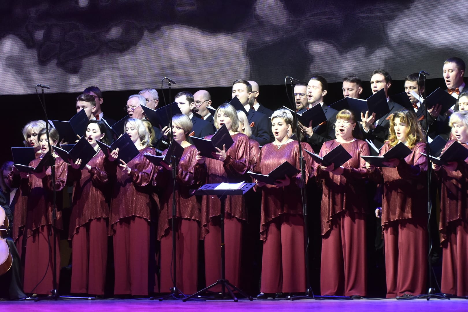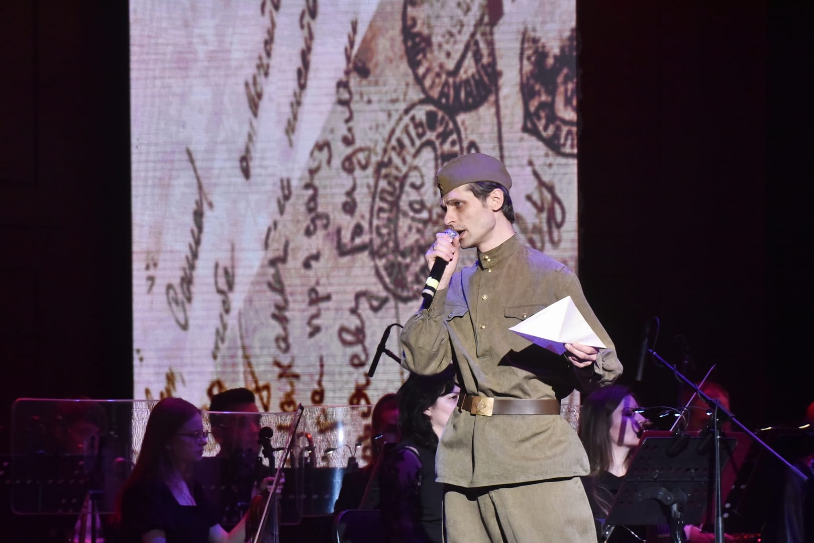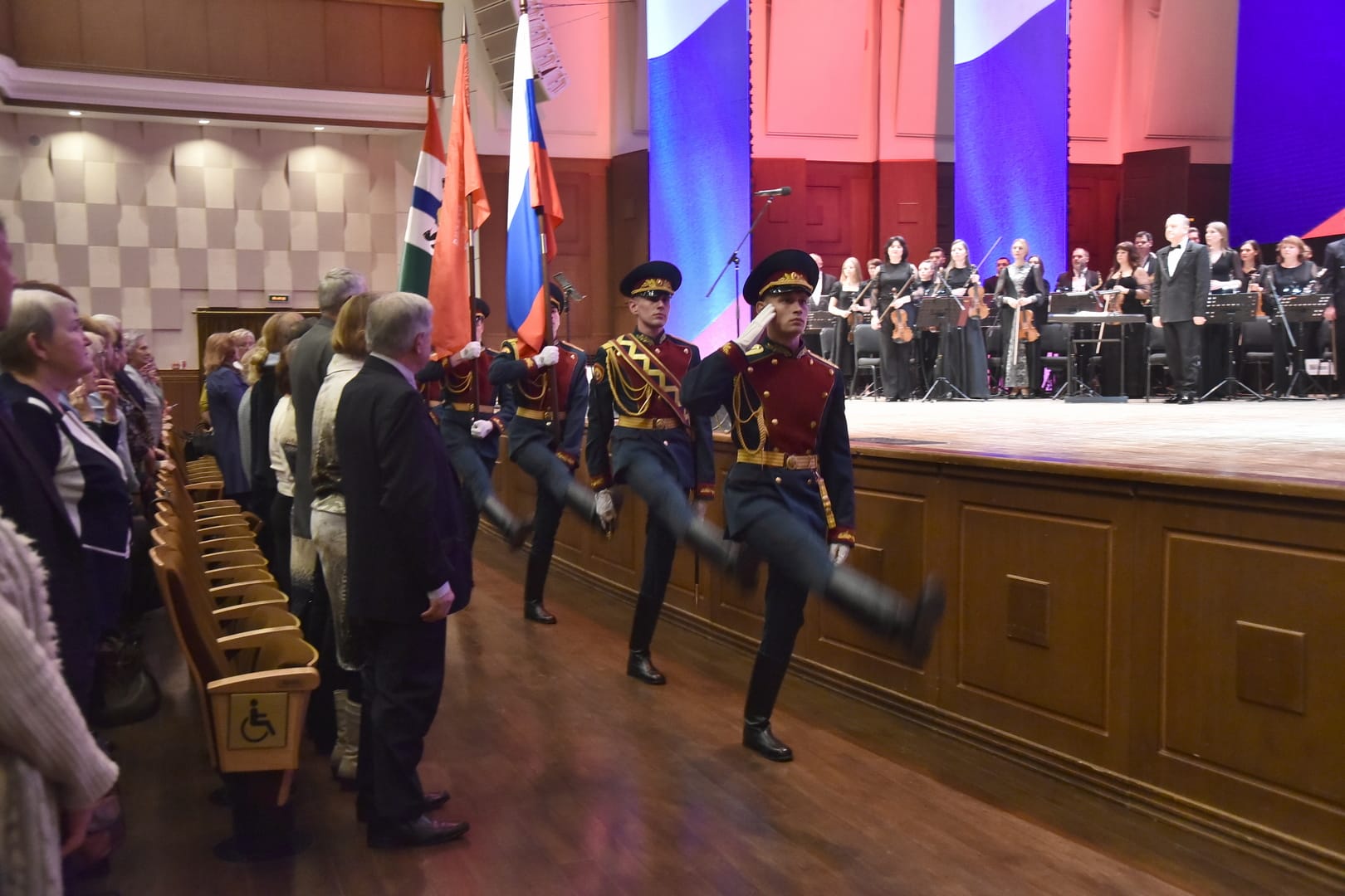 Вместе с ветеранами, курсантами военных учебных заведений, представителями общественности, членами военно-патриотических клубов и центров Андрей Травников и Андрей Шимкив также посетили торжественное мероприятие и концерт «Сталинград. Битва за будущее» в Государственном концертном зале имени Арнольда Каца.