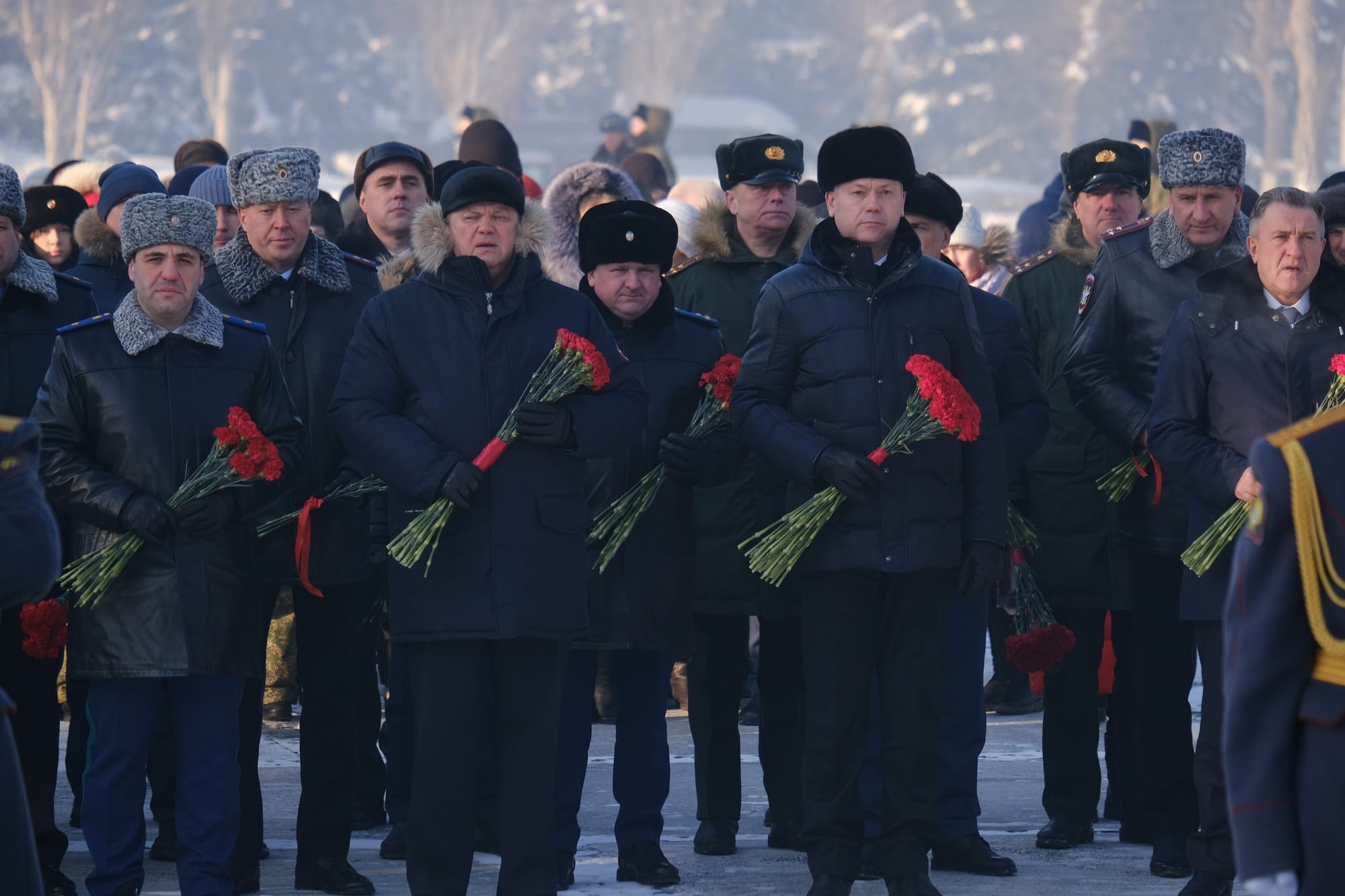 Губернатор Андрей Травников и Председатель Законодательного Собрания Новосибирской области Андрей Шимкив приняли участие в церемонии возложения венков и цветов на мемориальном ансамбле «Монумент Славы», посвящённой 80-летию разгрома Красной армией немецко-фашистских войск в Сталинградской битке 1942-1943 годов. Участники церемонии почтили память воинов-сибиряков, сражавшихся за Сталинград, минутой молчания.