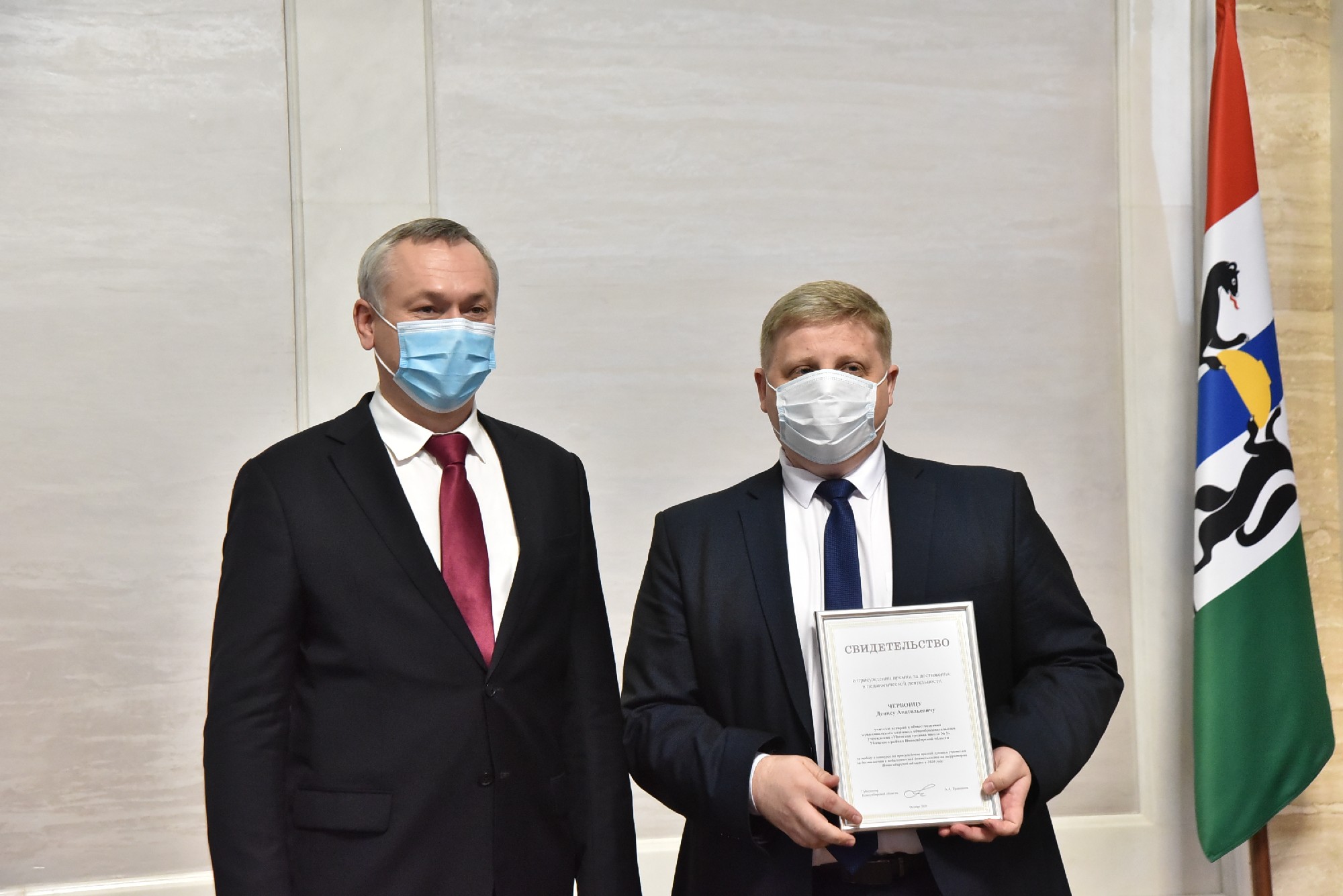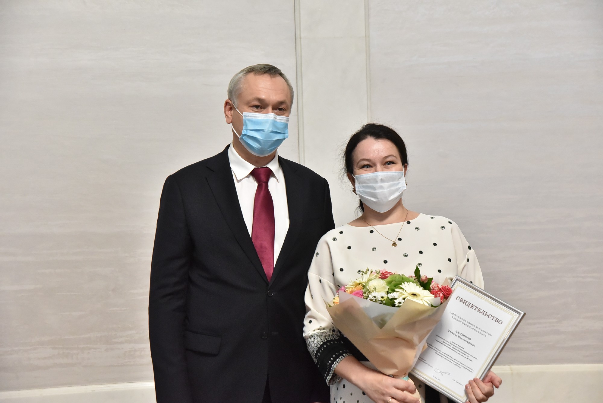 В рамках праздничной церемонии, посвящённой профессиональному празднику «Международный день учителя», глава региона вручил свидетельства победителям федерального конкурса на присуждение премий лучшим учителям за достижения в педагогической деятельности на территории Новосибирской области в 2020 году, наградил победителей областного конкурса на присуждение премии «Почётный работник образования Новосибирской области».